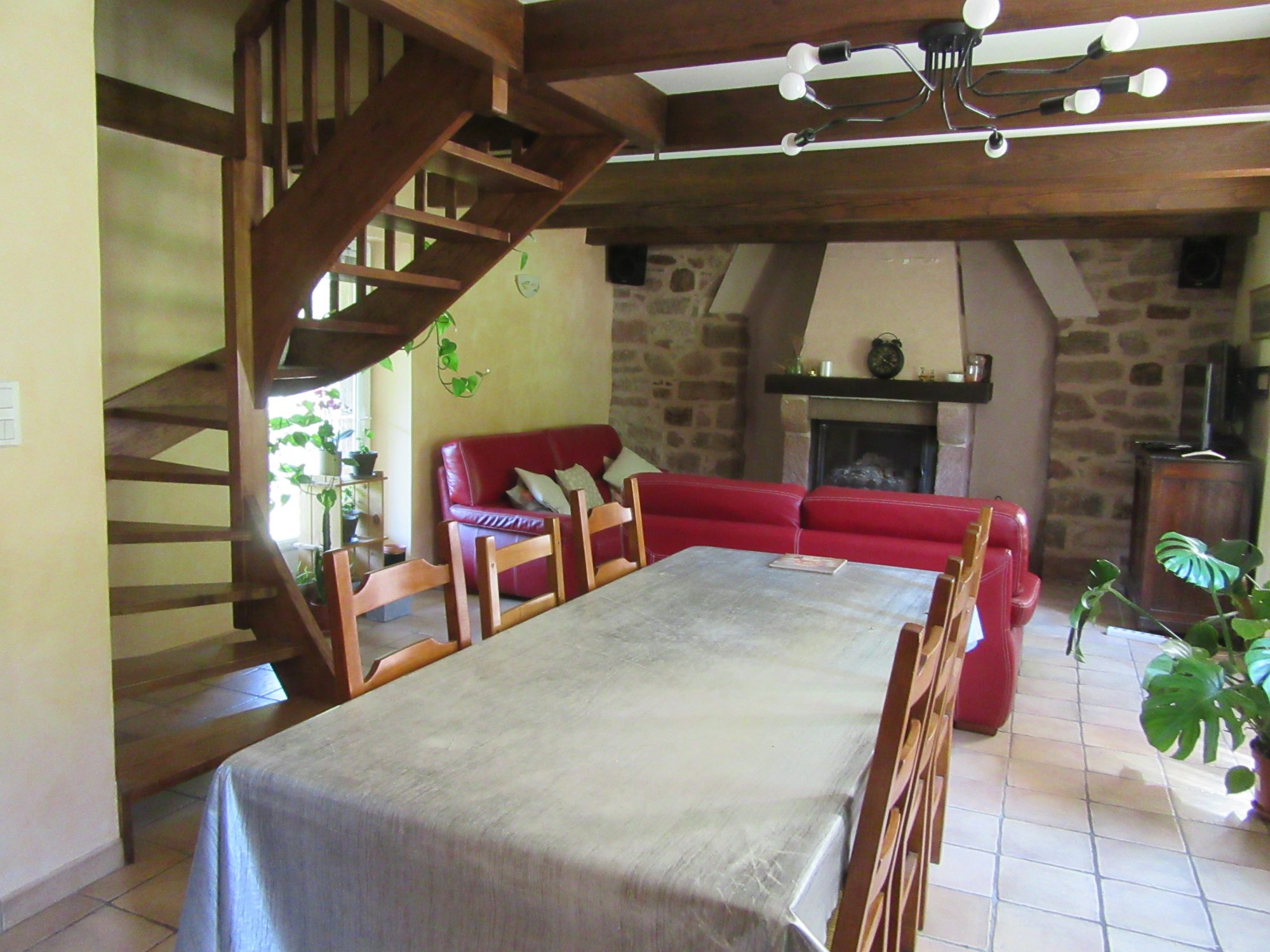 Maison typique en pierre rouge avec appartement indépendant dans un agrandissement, four à pain et très beau terrain attenant arboré et clôturé de 2903 m2. Elle comprend : *une partie habitation T3 de 71m2 environ avec une pièce de vie de 32,76 m2 environ avec coin cuisine et cheminée (insert) ouvrant sur une grande terrasse couverte, deux chambres et une salle d'eau avec WC *une partie appartement T2 de 34 m2 environ avec une pièce de vie de 13,80 m2 environ ouvrant sur une terrasse bois, une chambre de 11,73 m2, une salle d'eau et un WC séparé Possibilité de faire communiquer les deux parties. *en rez de chaussée, plusieurs dépendances à usage de remise, cave, buanderie d'une surface totale de 60 m2 environ. Construction traditionnelle en grès rouge, agrandissement en brique crépi, charpente traditionnelle, couverture en ardoise de Corrèze, menuiserie PVC double vitrage, chauffage électrique et bois (insert), assainissement individuel. Maison en très bon état dans un bel environnement ! à voir absolument !