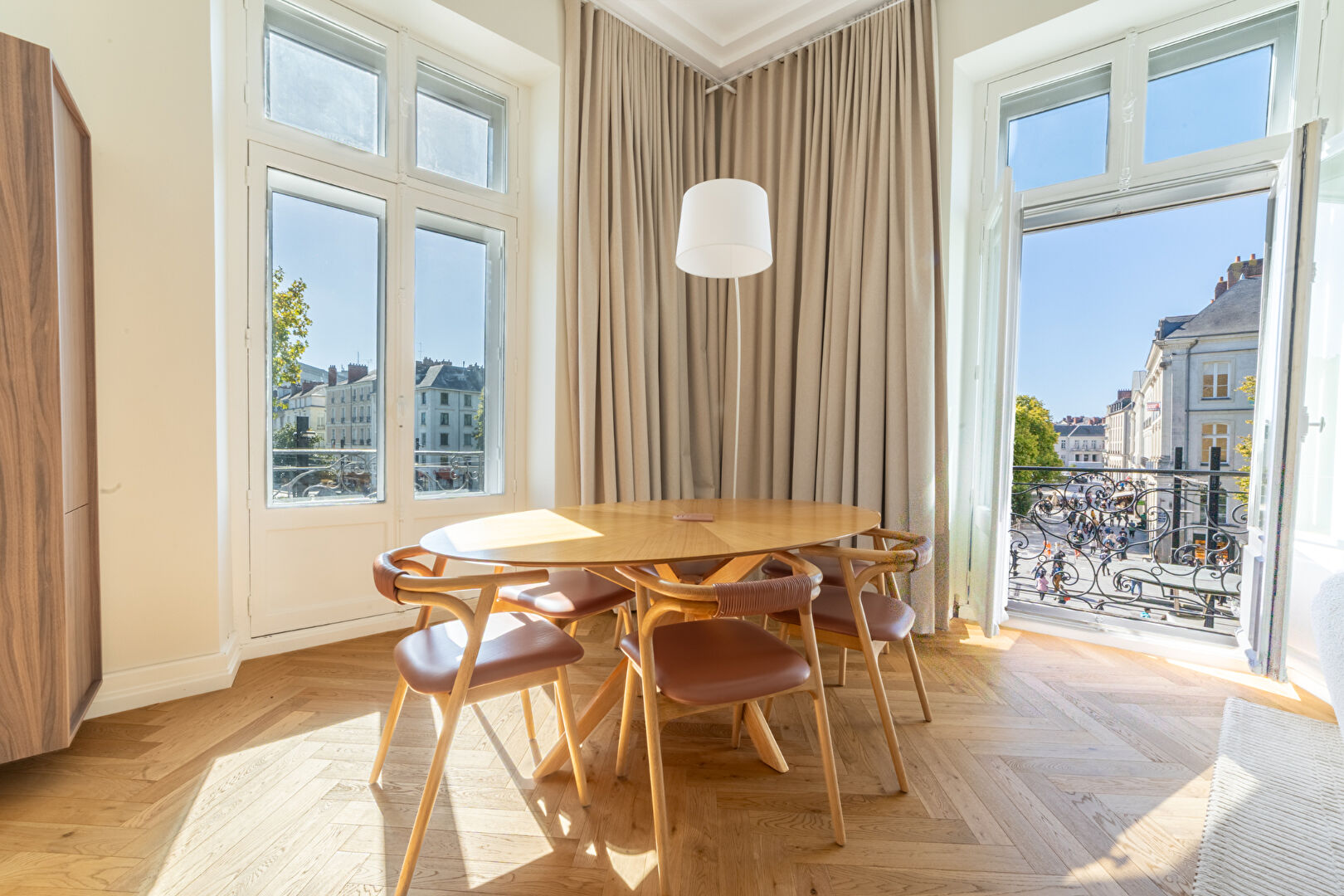 Nantes - Centre-ville : idéalement situé au coeur du centre historique de Nantes, aux pieds du tram et des commerces et à 5 minutes à pieds de la gare, ce bien rénové aux prestations haut de gamme est niché au 2ème étage avec ascenseur d'un immeuble d'armateur rénové.