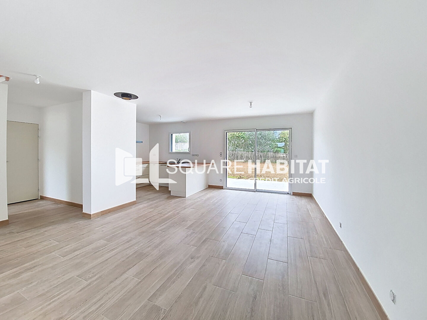 La maison se compose au rez-de-chaussée d'une entrée avec placard, d'un salon séjour traversant lumineux, donnant accès à une terrasse exposée plein sud, d'une cuisine ouverte aménagée et équipée, d'une arrière-cuisine attenante, d'une chambre, d'un WC indépendant ainsi qu'un garage fonctionnel avec espace de rangement.