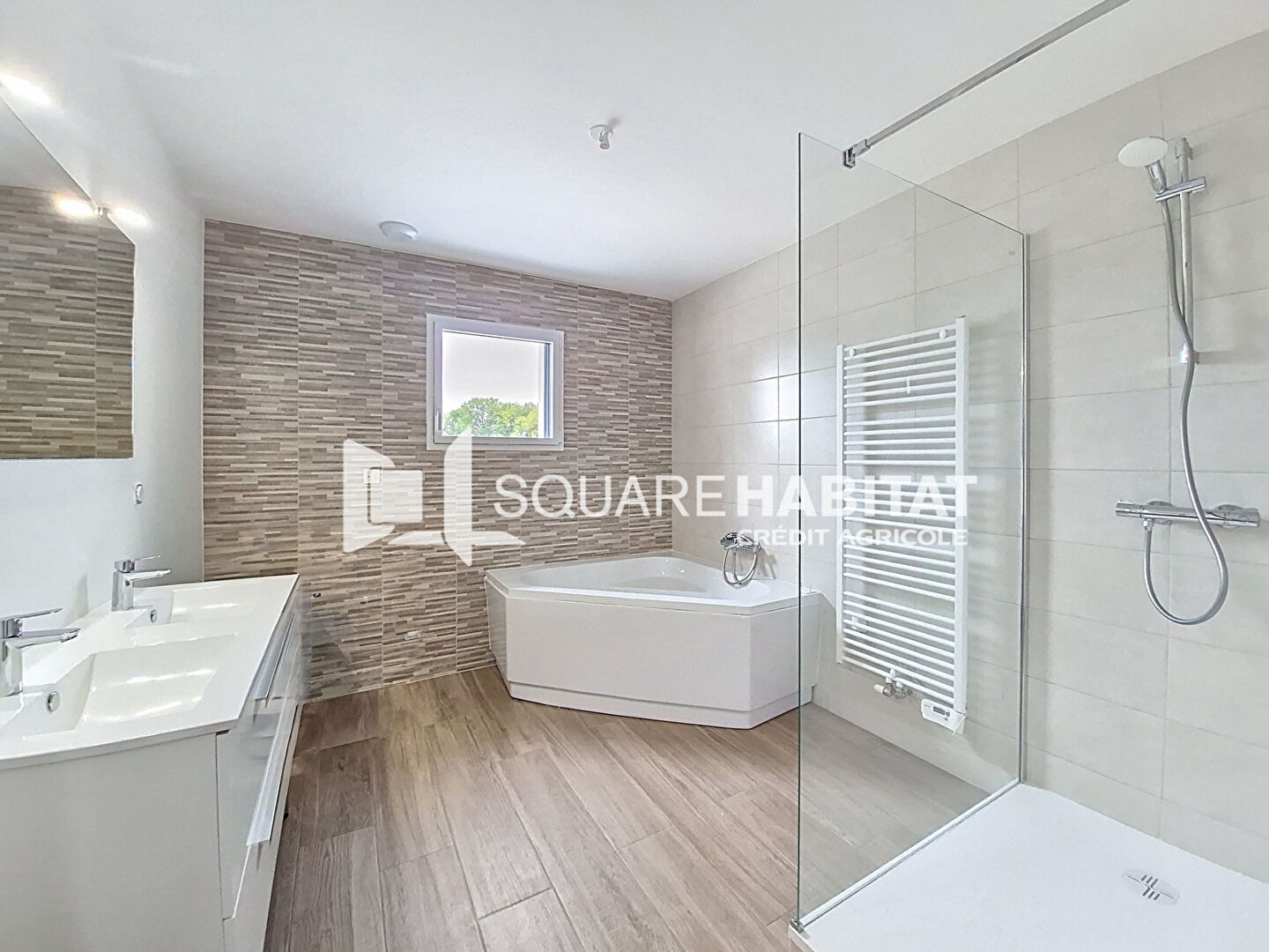 À l'étage, un palier dessert trois chambres, dont une suite parentale avec dressing, une salle de bains équipée d'une baignoire et douche (double vasque), ainsi qu'un second WC indépendant.