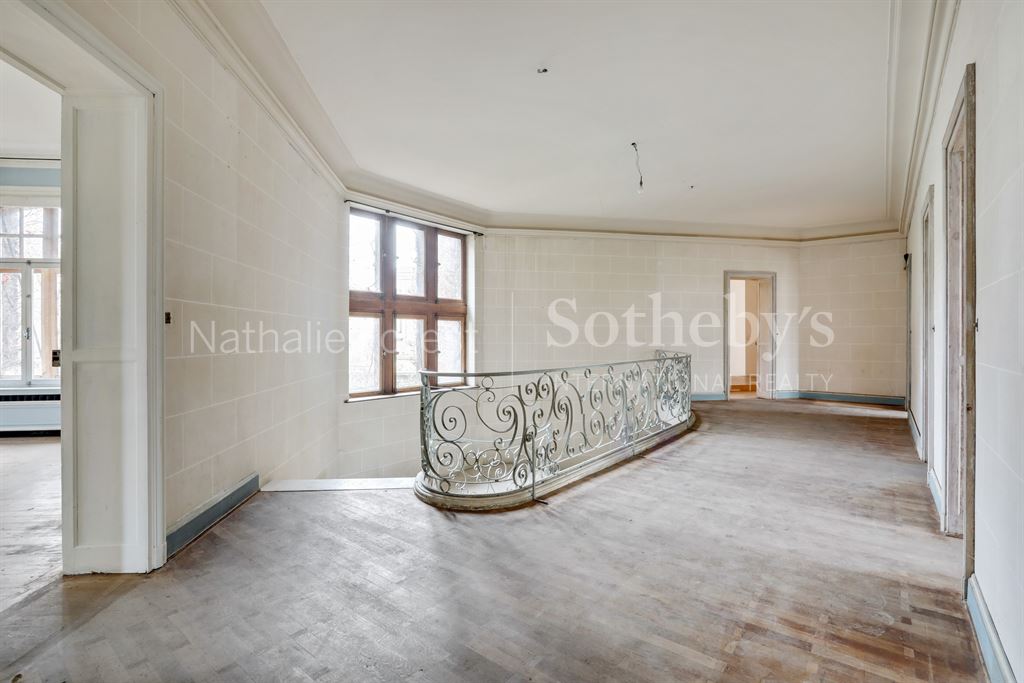 À l’étage, une vaste suite parentale de 35 m² en angle, avec cheminée, portes cintrées, dressing et salle de bains, est complétée par quatre autres chambres d’environ 25 m² et une seconde salle de bains.