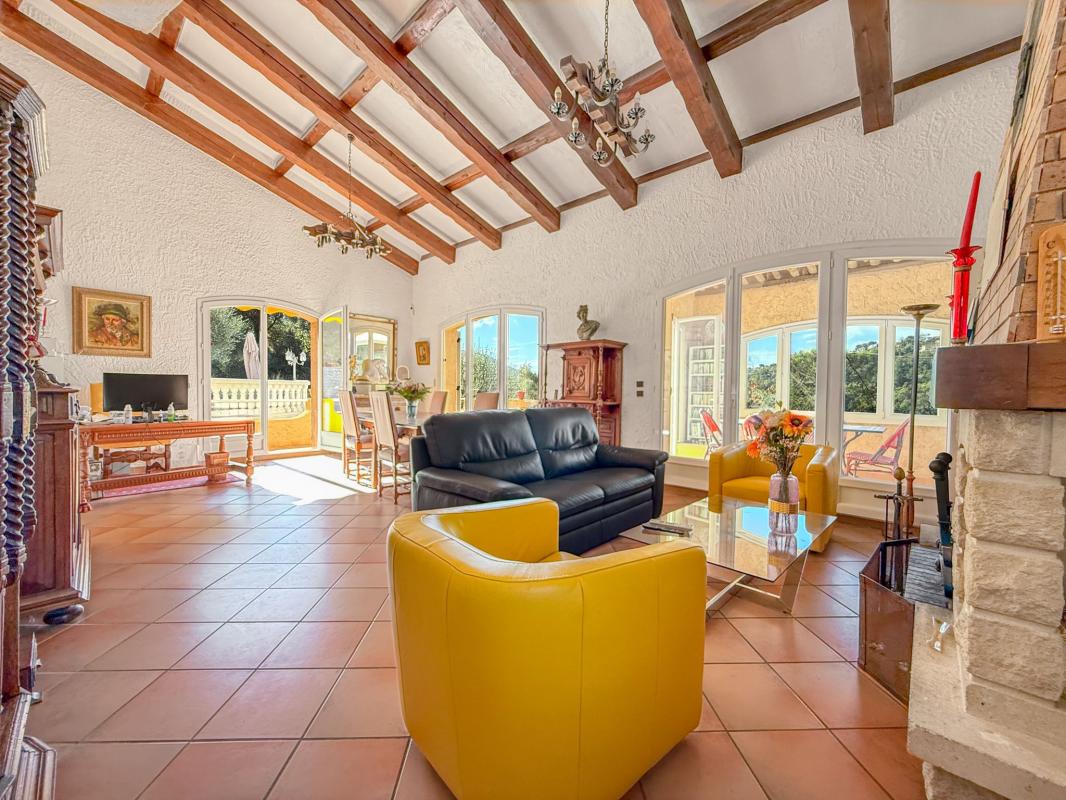 A l'extérieur un grand terrain de 2000 m2 sans vis-à-vis, entouré de verdure et d'oliviers parfait pour les jeux, le jardinage ou les repas en plein air et une grande piscine sécurisée.