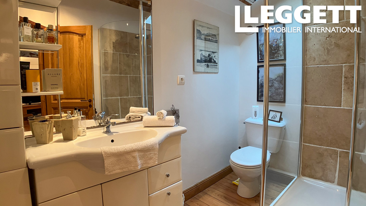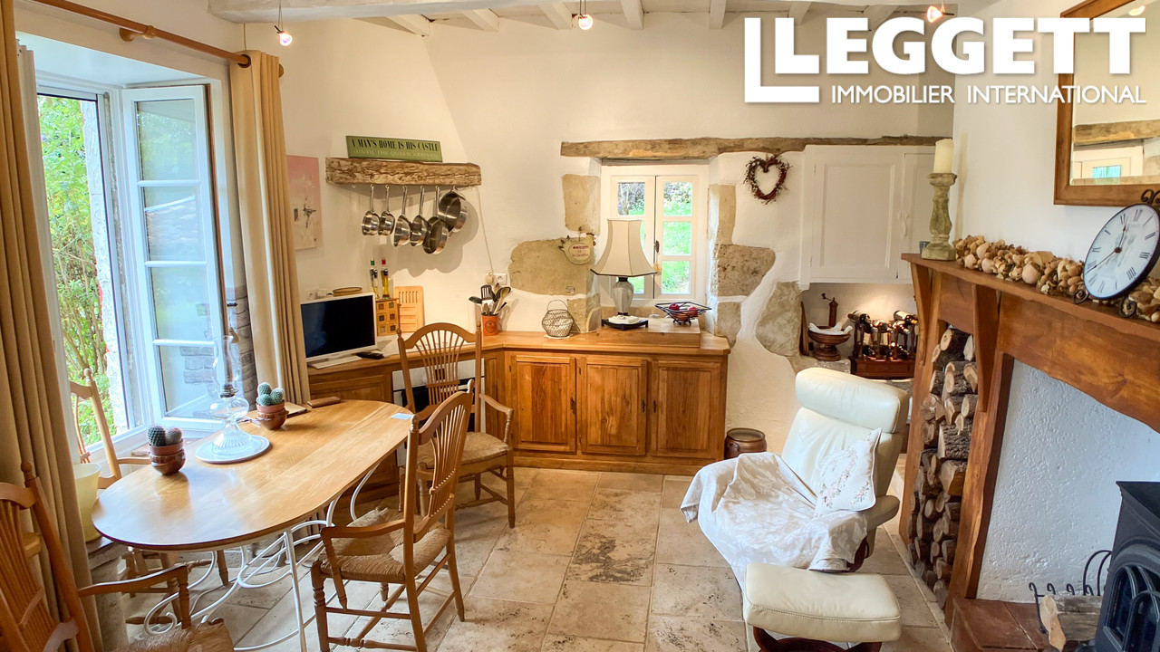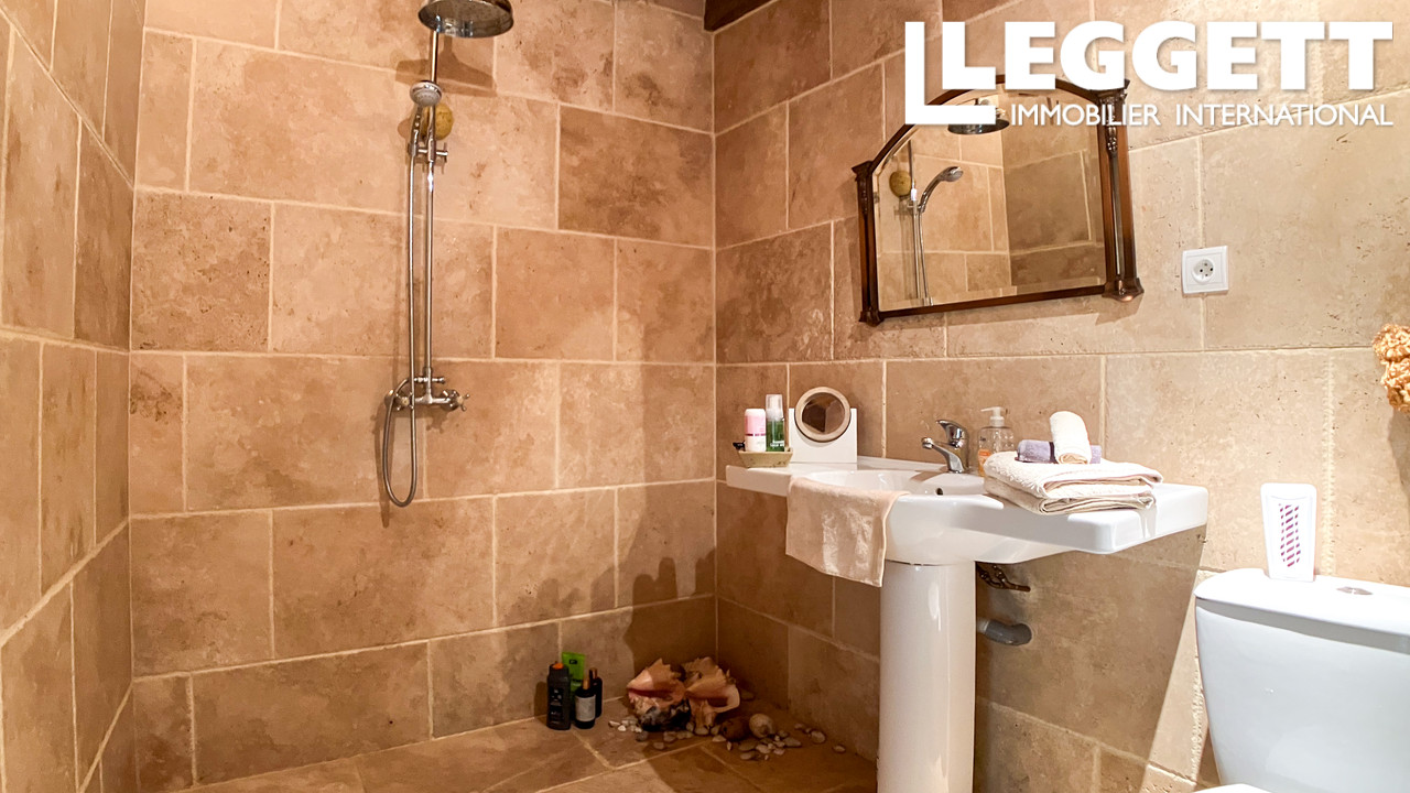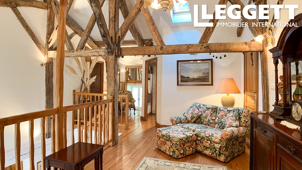 A39770NJD47 - Cette belle maison mitoyenne, entièrement rénovée avec goût, offre environ 133 m² habitables, comprenant 2 chambres, 2 salles de bain, des espaces de vie en mezzanine, un double garage et un carport couvert. Implantée au coeur d'un jardin paysager, elle bénéficie de vues panoramiques sur la campagne environnante, à seulement quelques minutes du charmant village médiéval de Sos.