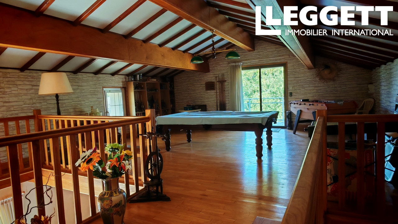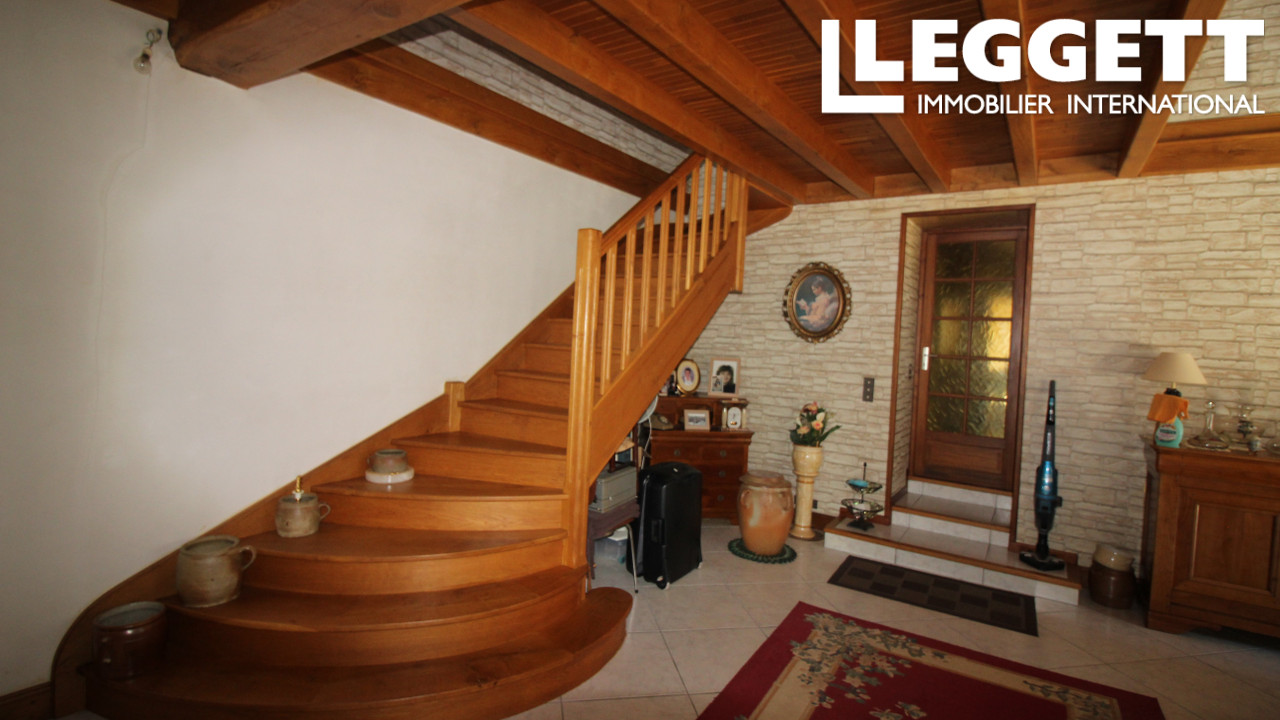 A40343TRE16 - Située dans un village paisible, cette spacieuse maison de cinq chambres allie caractère et praticité. Offrant de généreux espaces de vie sur deux niveaux, deux salles de bains, une mezzanine/salle de jeux, un studio/bureau pratique avec cuisine et WC, une grande grange et un parking privé, cette propriété est idéale comme résidence principale ou maison de vacances.