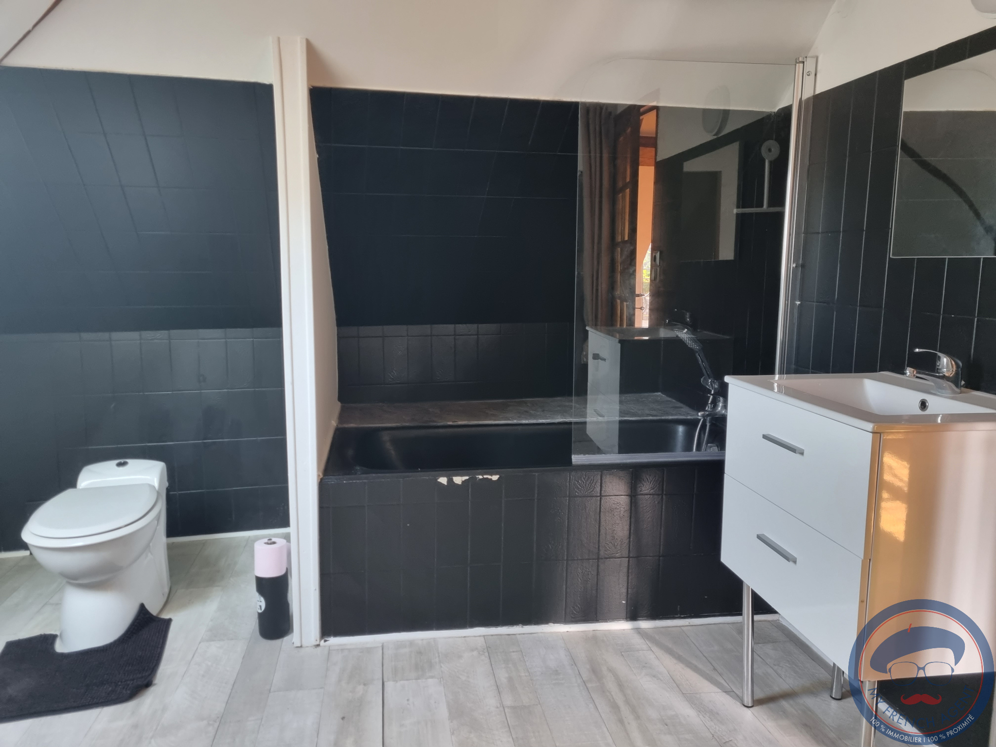 au rdc d'un grand séjour avec cheminée ouvert sur une cuisine équipée et aménagée et d'un toilette. A l'étage une magnifique chambre mansardée est accompagnée d'une grande salle de bain avec toilette. En souplex, vous trouverez une deuxième chambre, une chaufferie et buanderie et une courette entièrement clos de murs et à l'abri des regards.