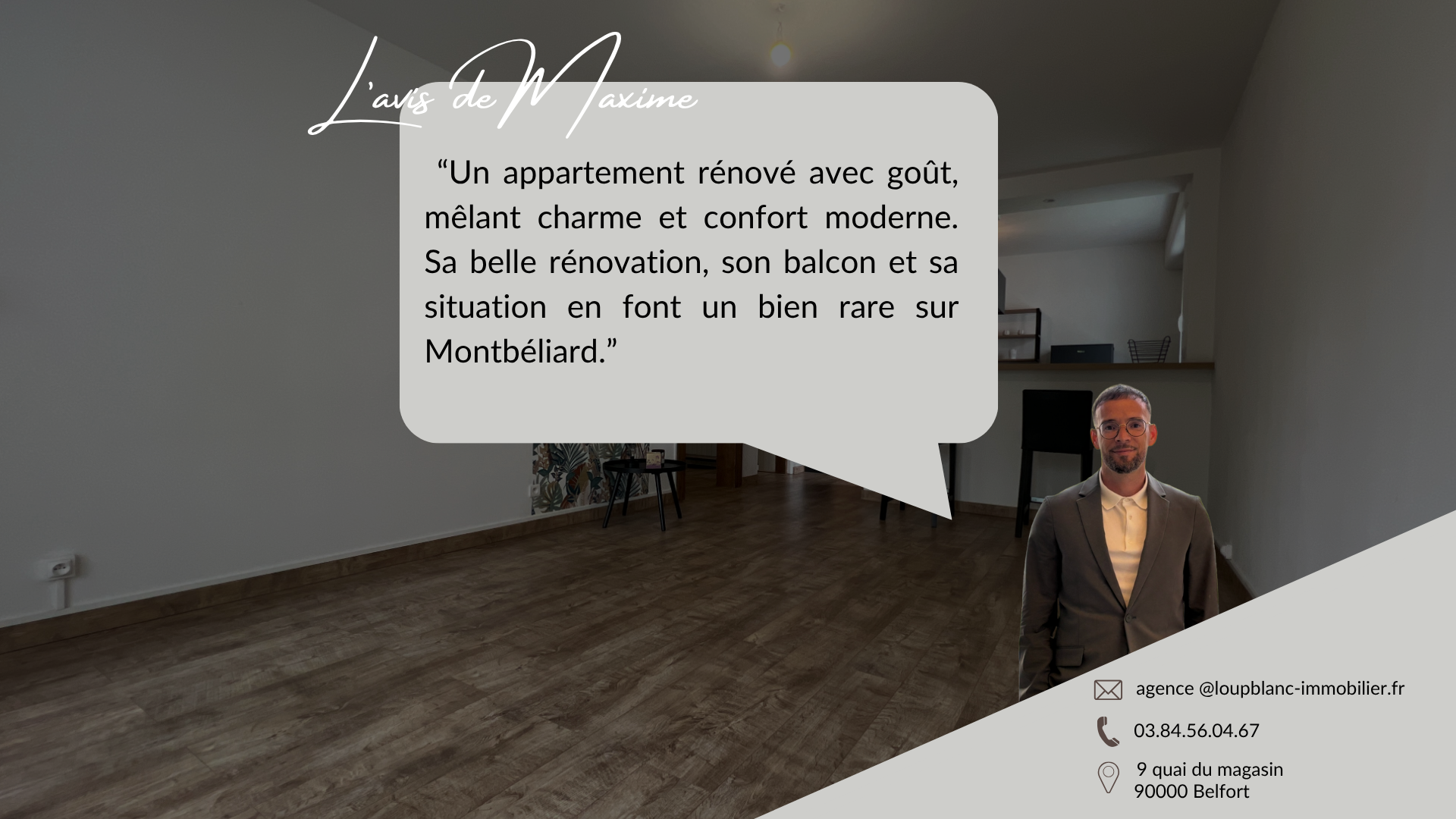 L'avis de Maxime : 'Un appartement rénové avec goût, mêlant charme et confort moderne. Sa belle rénovation, son balcon et sa situation en font un bien rare sur Montbéliard.'