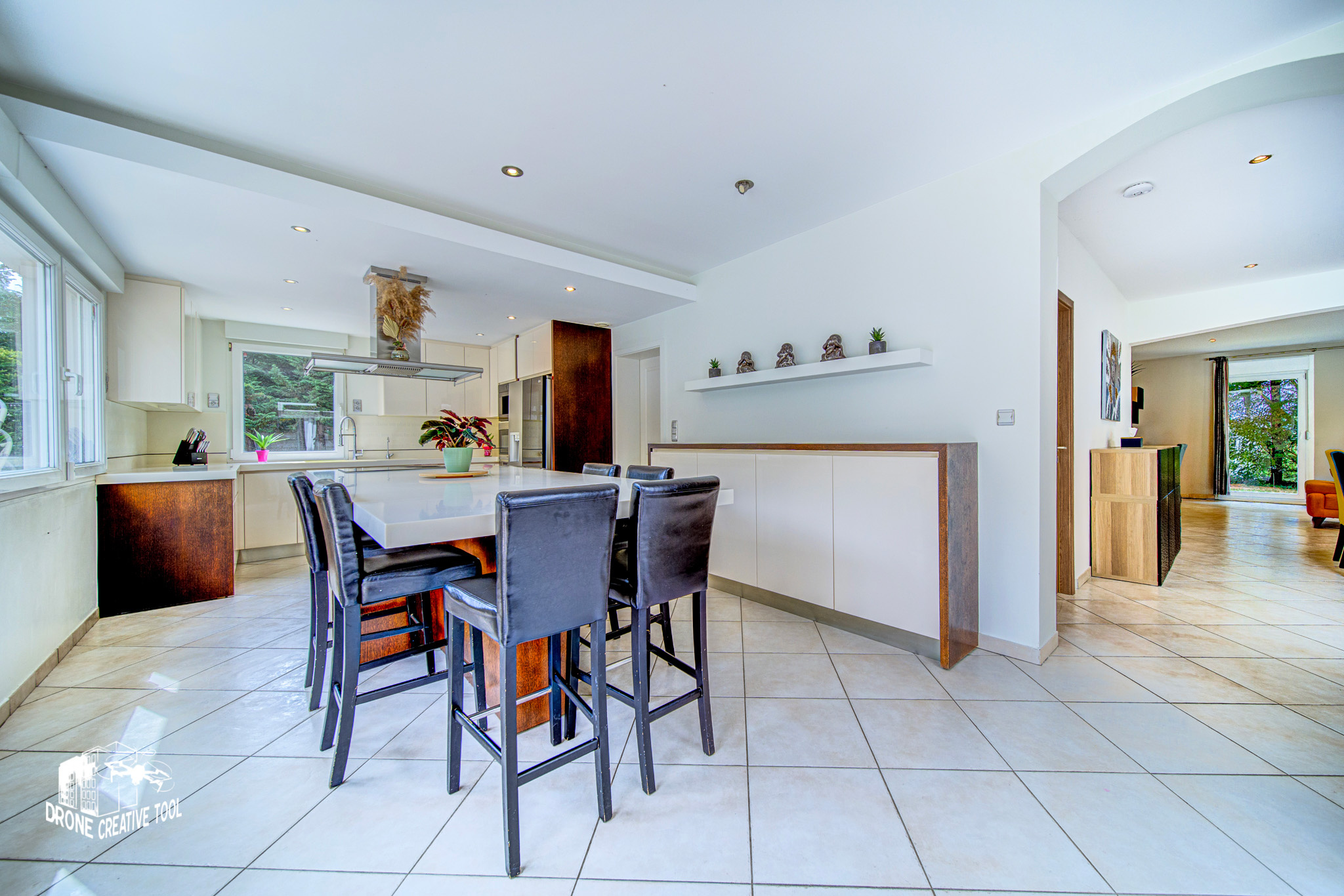 - RDC : un garage double & un garage simple avec la cuve à Fioul, une belle entrée, une cuisine entièrement équipée avec machine à café intégrée entre autres, une buanderie/chaufferie de plus de 14m2, une SDD, un WC indépenadant , un cellier, une salle à manger avec un premier salon d'environ 50m2 donnant sur un magnifique séjour de plus 60m2 avec accès sur la grande terrase de plus de 100m2 avec piscine chauffée, terrain de pétanque le tout entièrement cloturé et arboré;