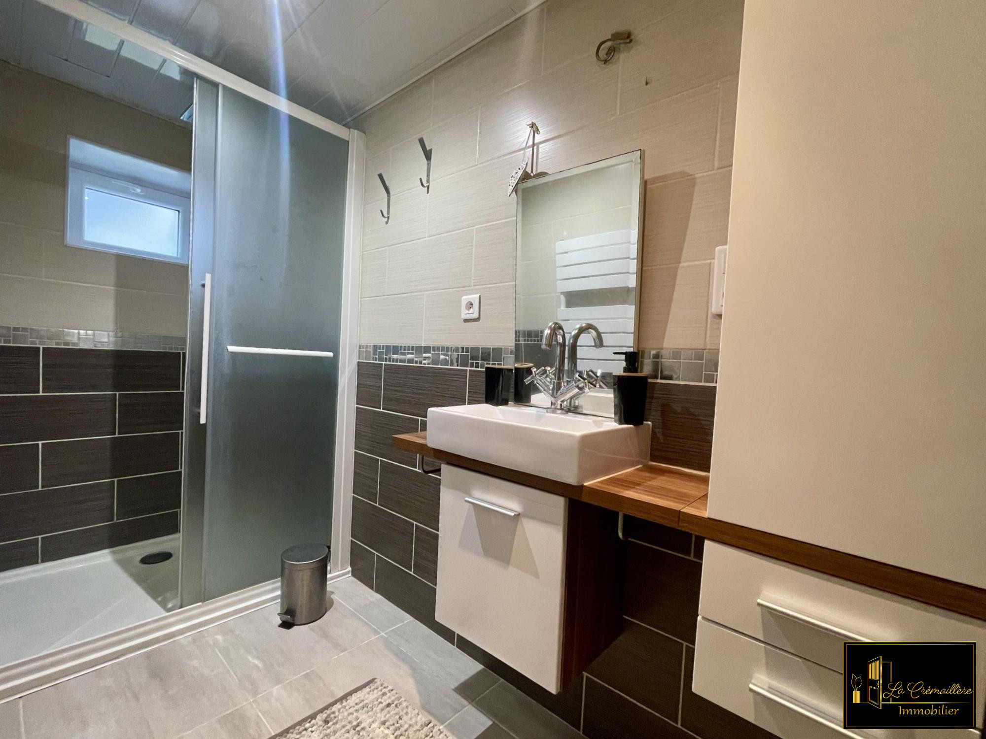 Au premier étage, vous découvrirez une cuisine aménagée et entièrement équipée, une agréable pièce de vie, une chambre, un WC indépendant et une salle de bains.