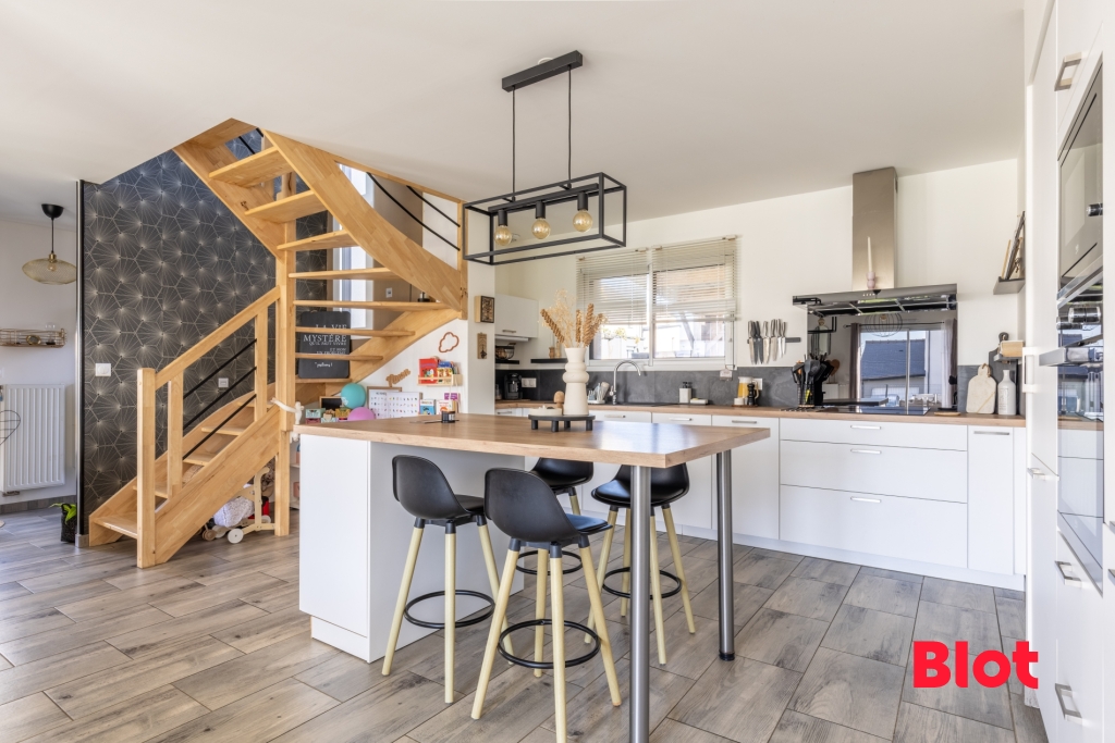 A VENDRE. Située au cœur de la ville de SAINT AUBIN DU CORMIER, proche de toutes les commodités, commerces, écoles, collèges, et activités sportives, cette maison de style contemporain construite en 2021 offre un cadre de vie moderne et fonctionnel.