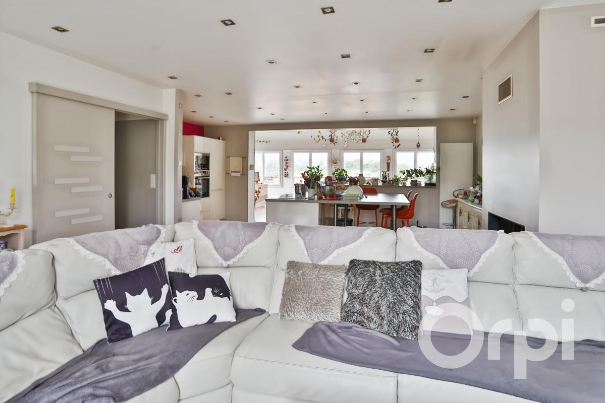Pavillon familial comprenant une pièce à vivre de 75m² composée d'un salon avec cheminée insert ouvert sur une cuisine aménagée et équipée avec îlot central et une salle à manger en cathédrale et larges baies vitrées, couloir, 4 chambres, salle de bains, bureau, wc, buanderie. A l'étage: 1 chambre. Le rez de jardin offre une suite parentale avec chambre, salle d'eau et wc, qui donne directement sur une terrasse. Le sous sol de 135 m2 comprend un garage avec porte motorisée, atelier. chaufferie. Chauffage central fuel. Fenêtres PVC, tout à l'égout. 2 terrasses. Le tout sur un terrain clos de 843 m2. DPE/D ref: 6643