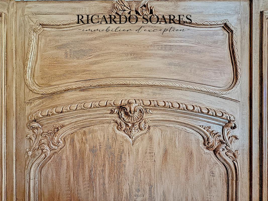 Dès l'entrée, la majesté des lieux se dévoile : un grand hall magistral mène à cet appartement situé au centre du bâtiment, profitant d'une luminosité naturelle et d'un calme absolu. Les matériaux d'époque, soigneusement préservés, confèrent à l'ensemble une atmosphère raffinée : parquet en point de Hongrie, boiseries sculptées, moulures authentiques, portes en chêne massif, et ferronneries ouvragées. La hauteur sous plafond de 6 mètres souligne encore la noblesse du lieu, tandis que la terrasse en pierre offre une vue panoramique sur le parc et la campagne environnante, invitant à la contemplation et à la sérénité.