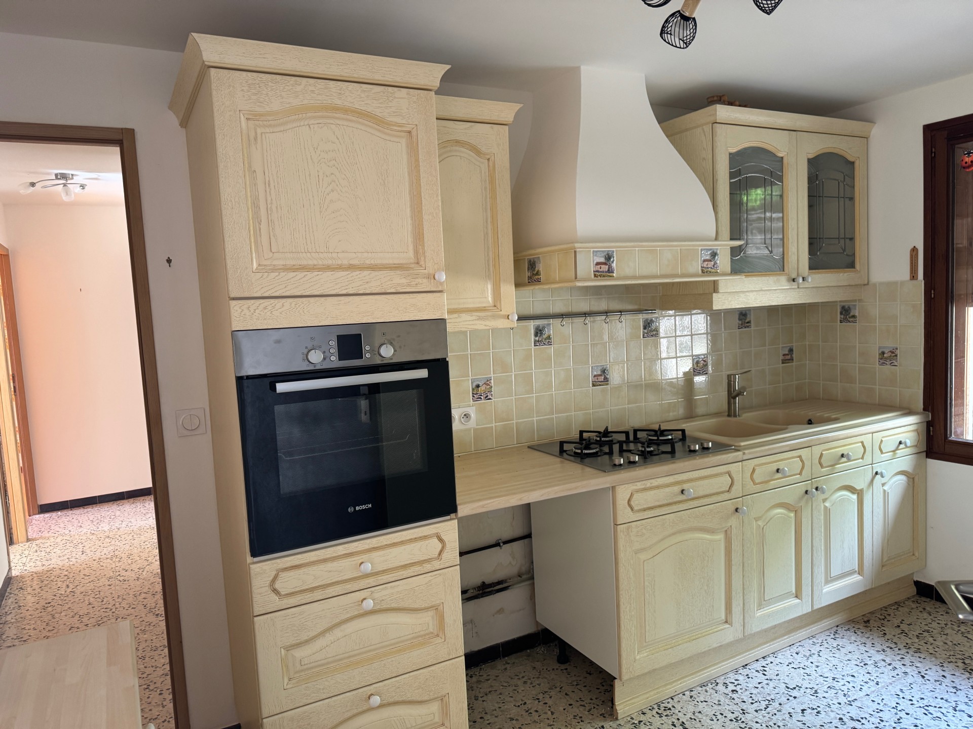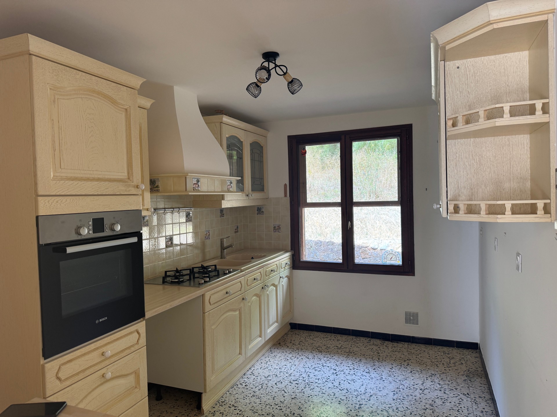Mitoyenne par le garage, elle se compose d'une entrée, un séjour lumineux donnant sur une terrasse à la jolie vue dégagée, une cuisine indépendante donnant accès au garage, deux chambres, une salle de douche et un wc.