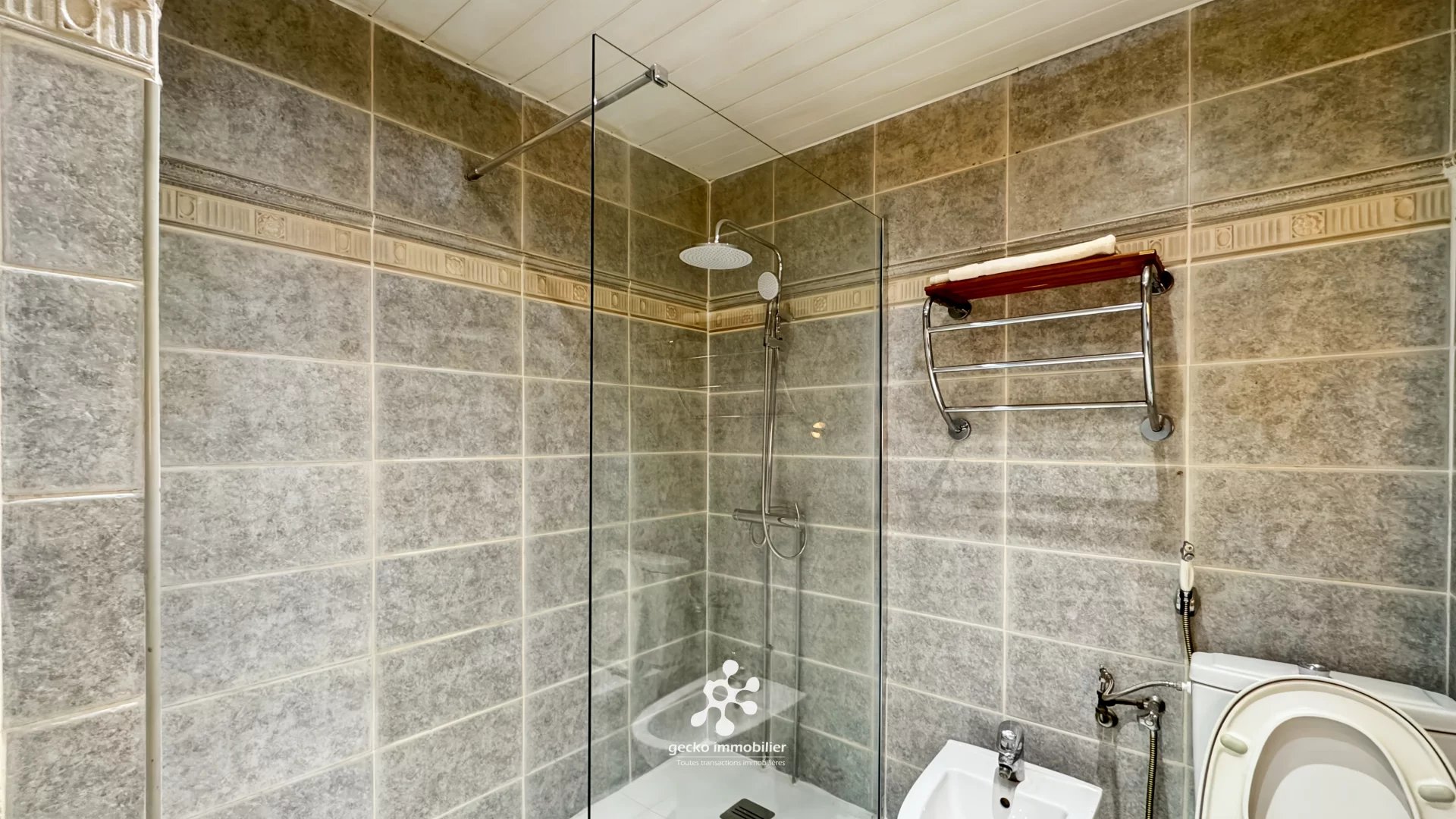 Côté nuit, trois chambres, chacune équipée de placards intégrés, deux salles d’eau dont une avec WC, ainsi qu’un WC indépendant. Cuisine séparée et nombreux rangements.