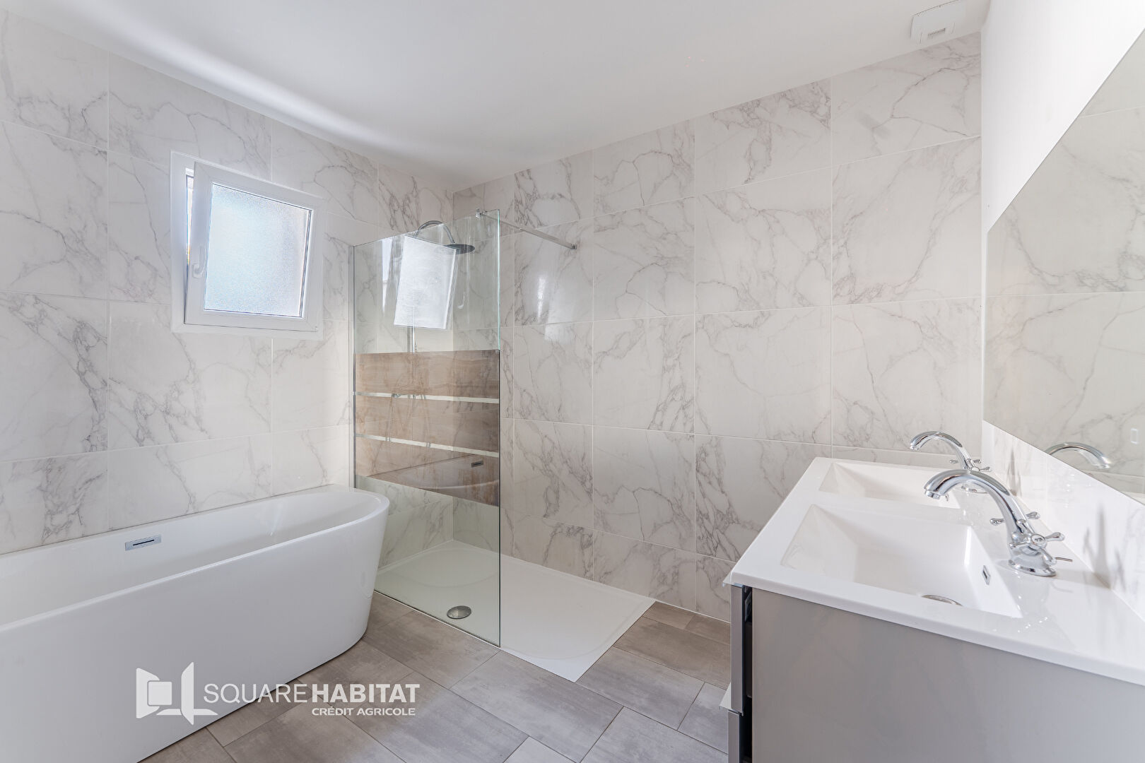 Dès l'entrée, vous découvrez un espace accueillant avec placard intégré et WC suspendu. La pièce de vie, véritable coeur de la maison, offre près de 70 m² baignés de lumière et accueille une cuisine ouverte, entièrement aménagée et équipée, sublimée par un îlot central convivial. Une buanderie attenante complète cet espace fonctionnel.
