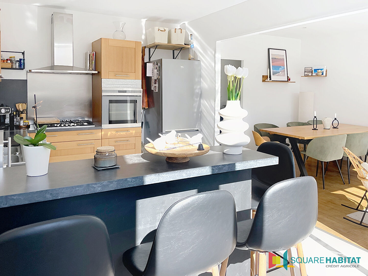 La grande entrée vous donne accès à une belle pièce de vie ouverte avec espace salon/séjour et cuisine aménagée, deux grandes chambres confortables et baignées de lumière, jolie salle d'eau moderne et des toilettes séparées.