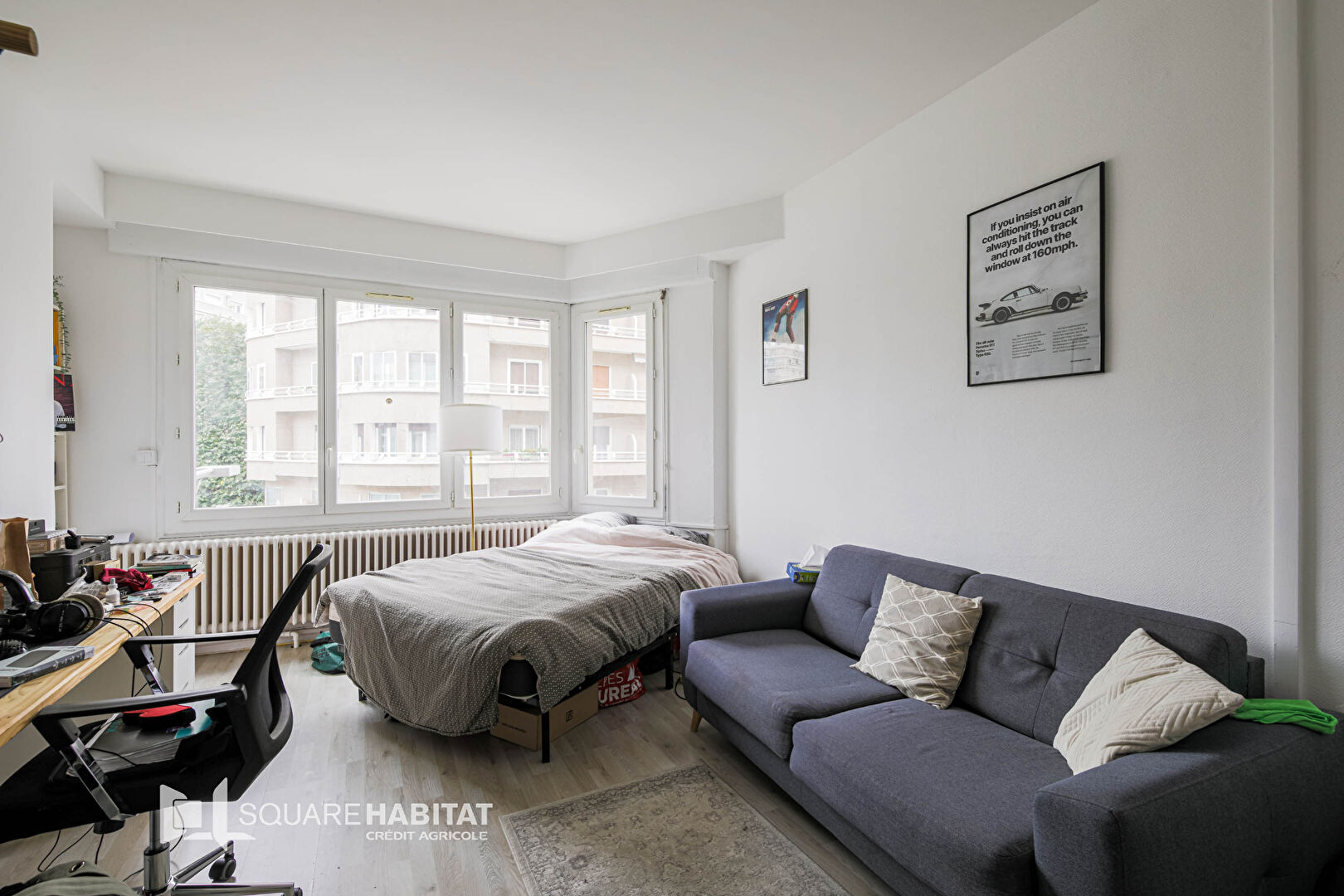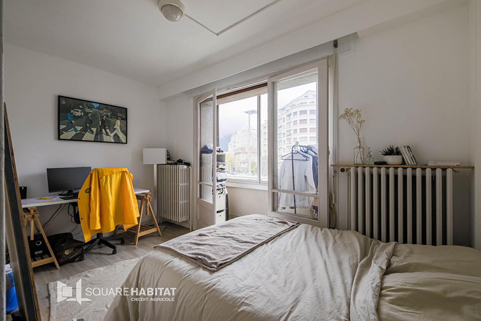 L'appartement se compose de quatre grandes chambres, dont deux avec accès à un balcon et à une loggia, d'un salon lumineux, d'une cuisine américaine équipée, d'une salle d'eau et d'un WC séparé.