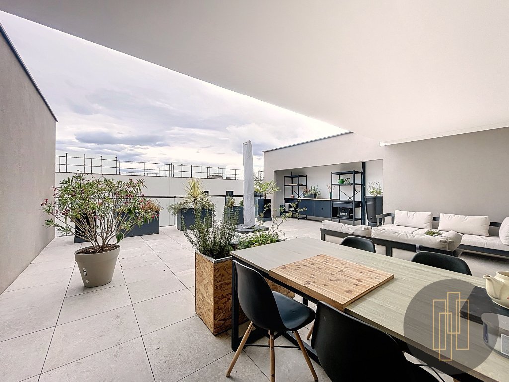 Situé dans cette copropriété d'exception, ce spacieux appartement T4 de 96 m² constitue un véritable havre de paix. Il se distingue par sa terrasse exceptionnelle de 57 m², en partie couverte, prolongeant l'espace de vie vers l'extérieur, été comme hiver.