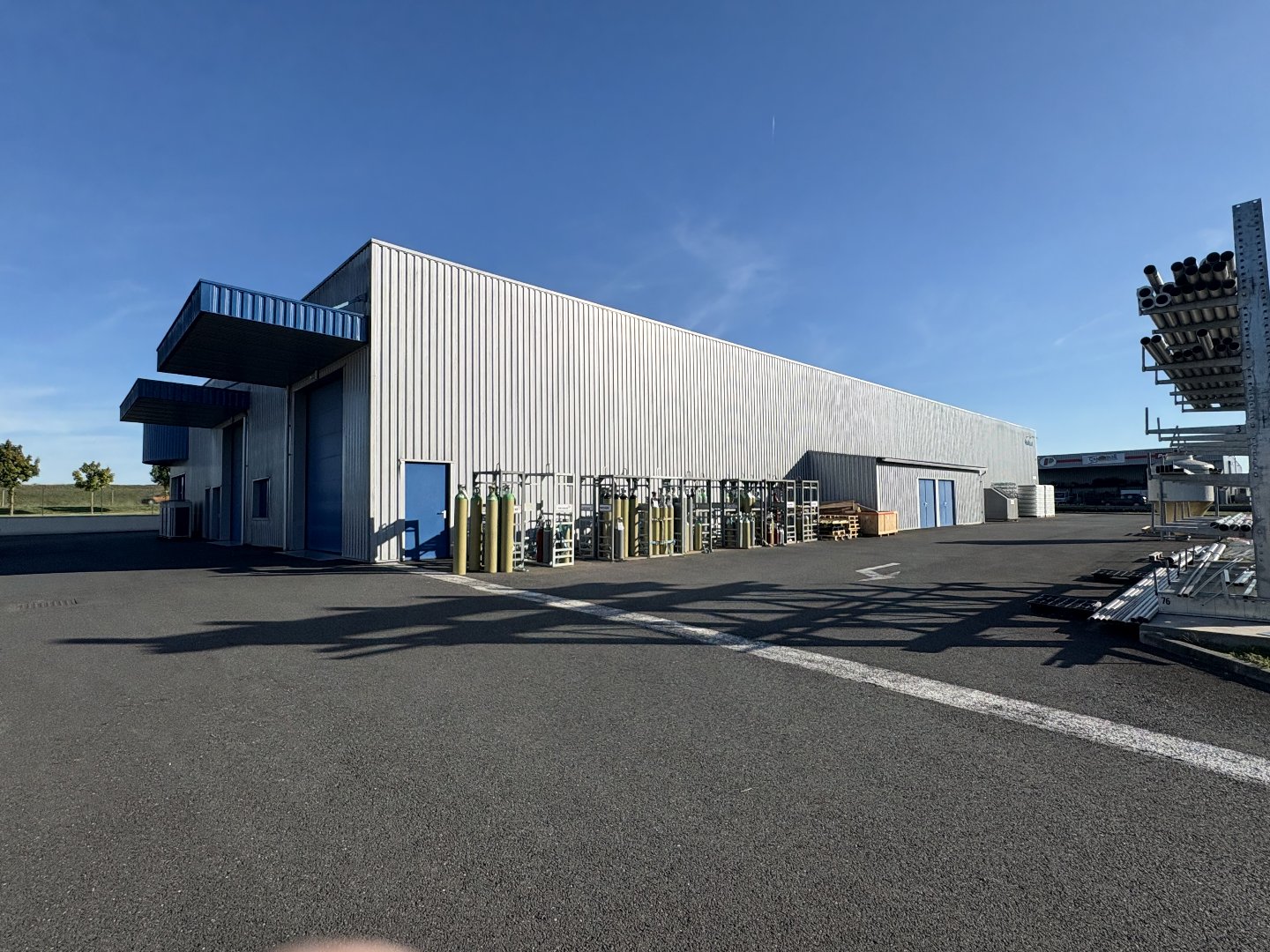 Entièrement neuf, ce bâtiment propose une belle surface de stockage accessible poids lourds, un atelier de maintenance (pouvant servir également de surface de stockage), une mezzanine et une grande surface de vente.