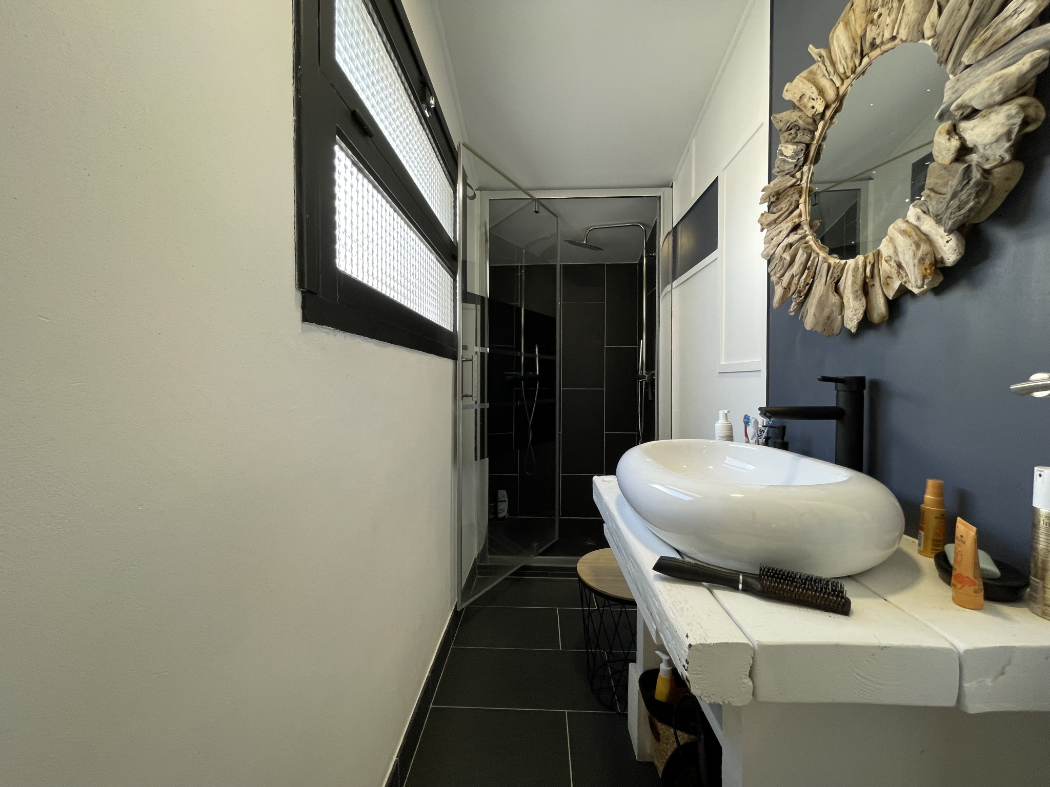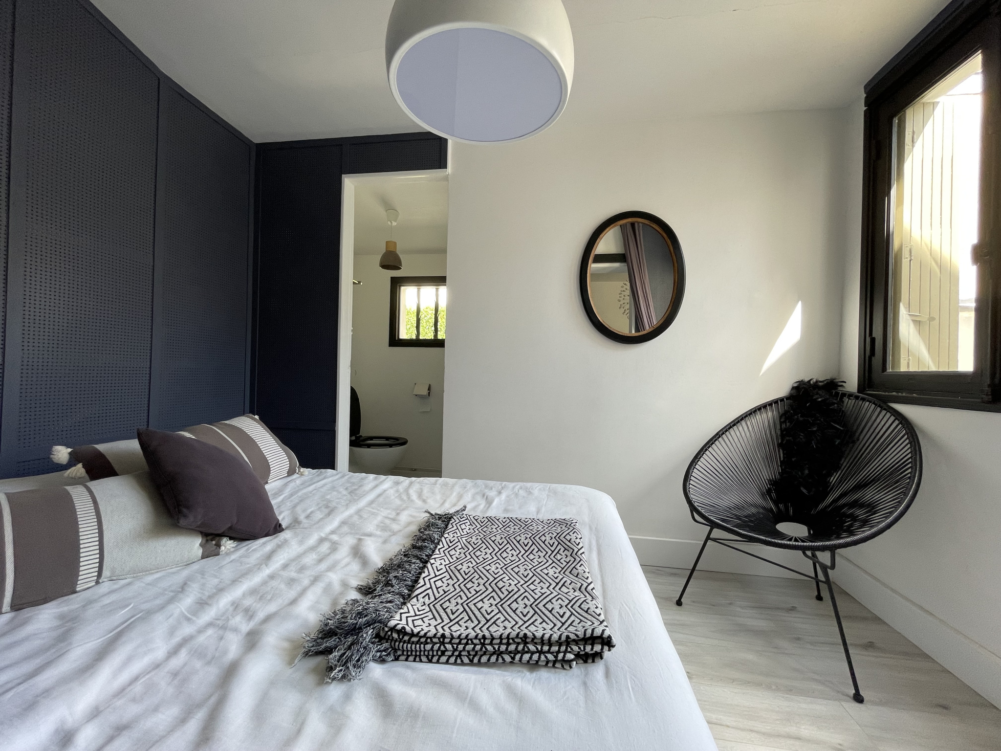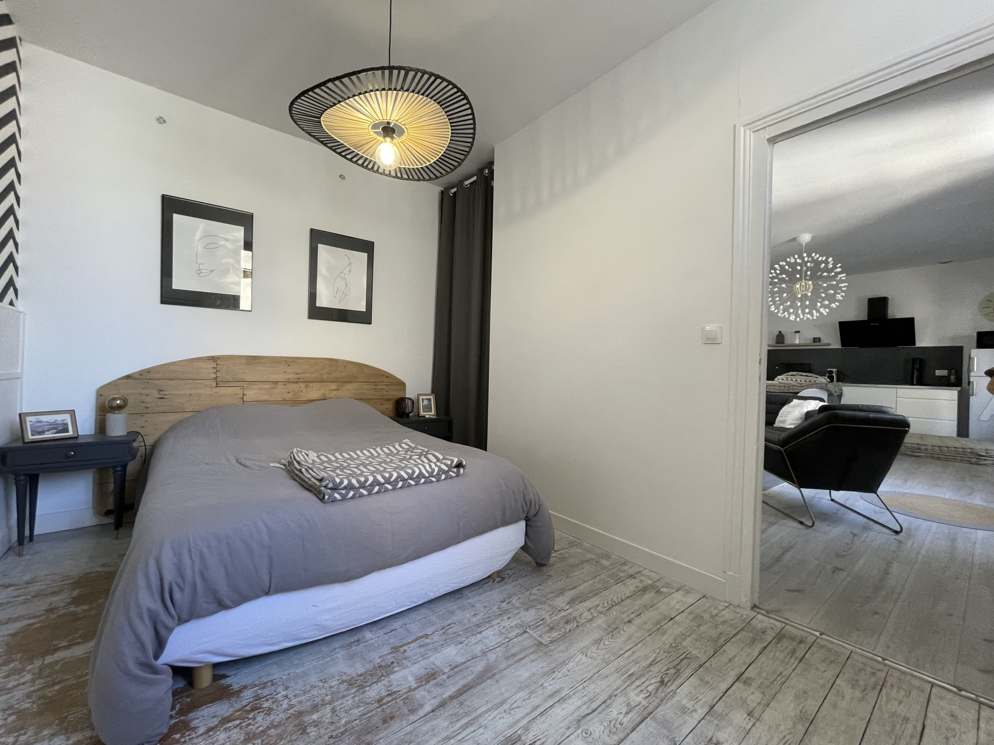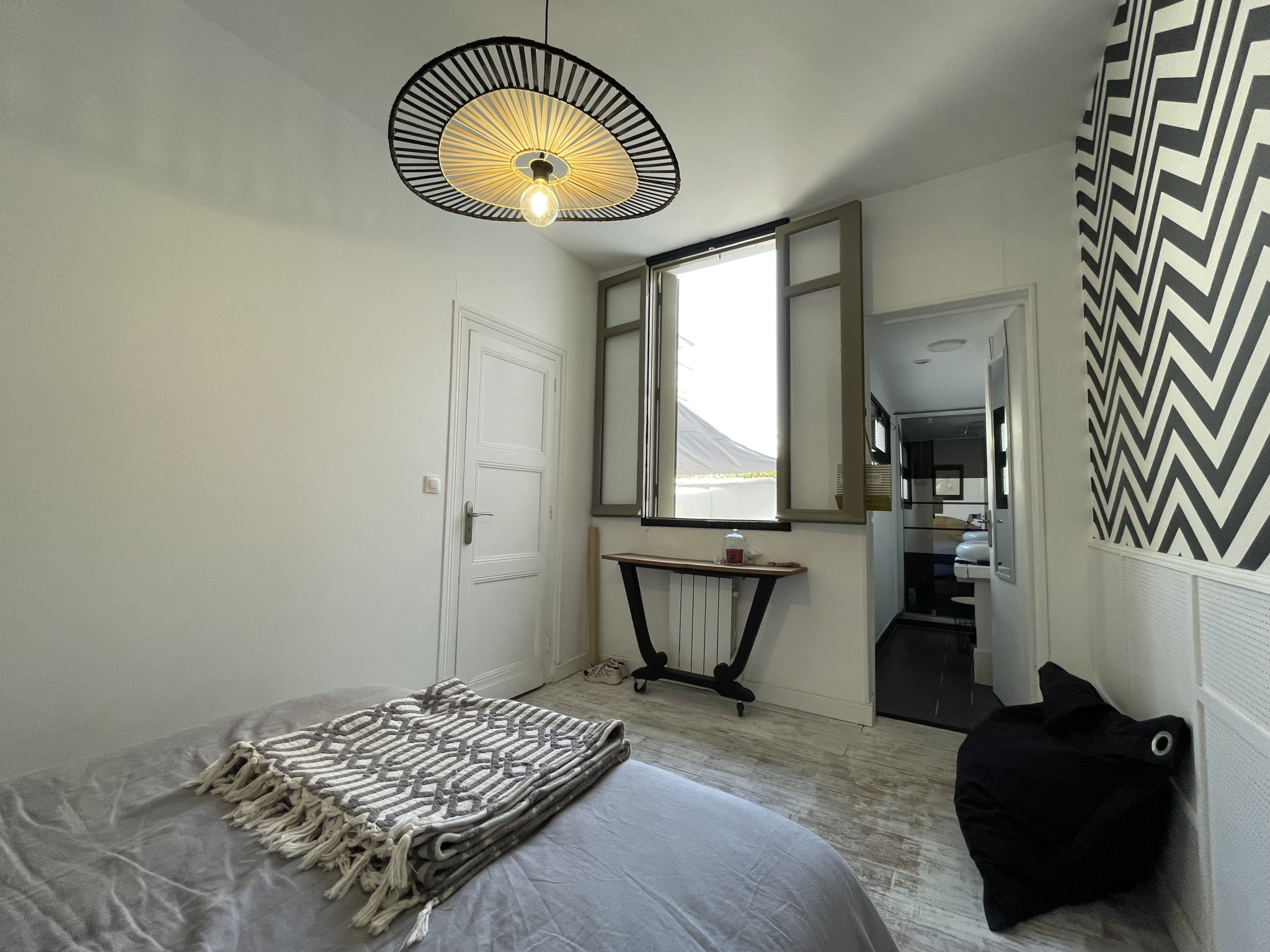 Cette maison de plain-pied d'une superficie de 49.697 m2 LOI CARREZ comprend, salon lumineux avec cuisine ouverte équipée (plaque de cuisson induction, hotte, réfrigérateur) ouvrant sur une belle terrasse de 17.32m2, chambre, WC séparés, chambre parentale avec salle d'eau. Une cave au sous-sol disposant d'une entrée indépendante à l'extérieur complète cette belle opportunité en plein coeur de VILLE.