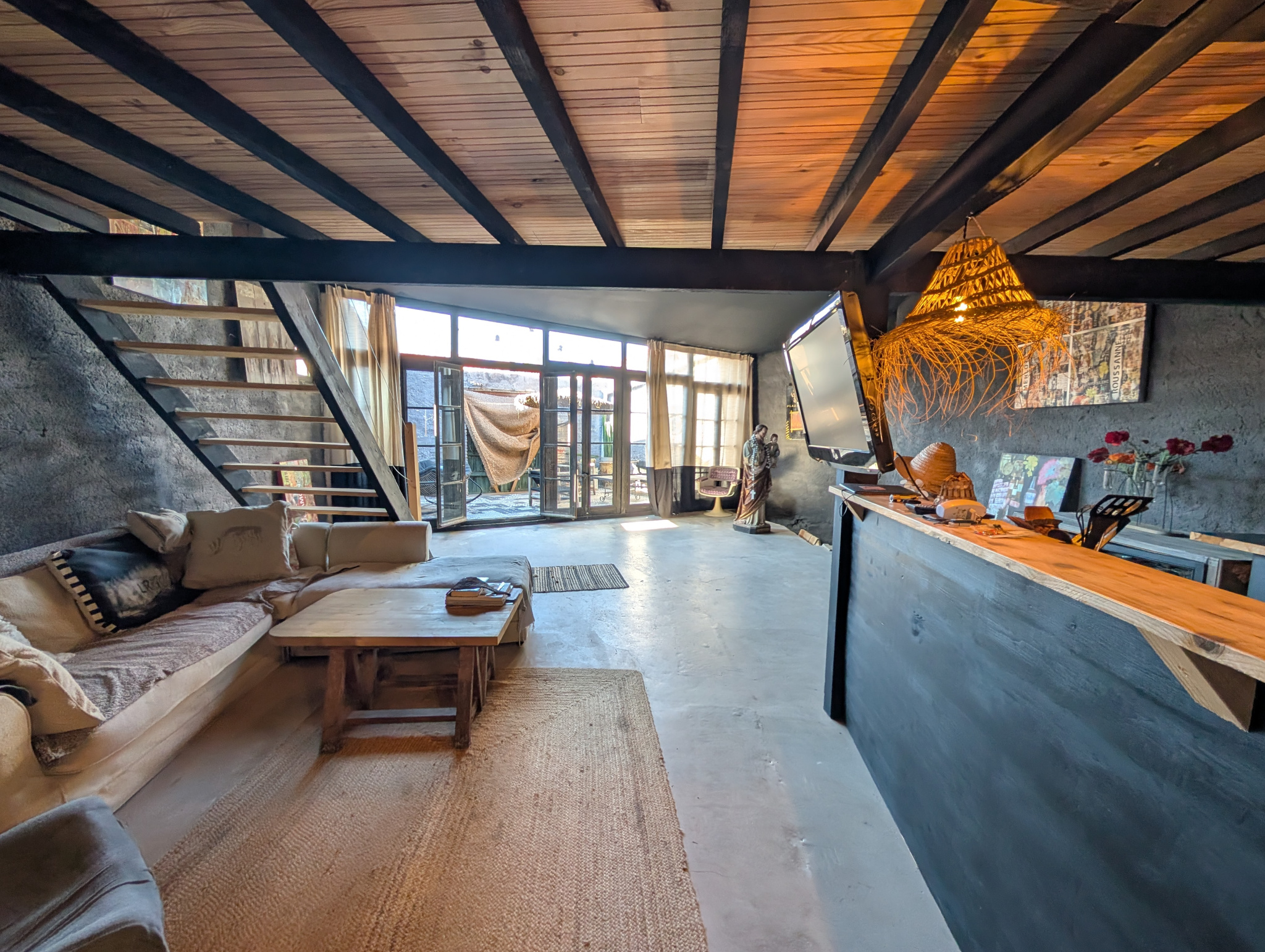 Actuellement, le rez-de-chaussée est aménagé en un vaste garage et atelier (115 m2), idéal pour les artisans, les passionnés d'automobile ou simplement pour un besoin de stockage conséquent. Au-dessus, le premier niveau de même surface est un plateau entièrement brut, conservé en remise. Cet espace n'attend que votre imagination pour devenir, au choix, un second logement indépendant, des bureaux, ou l'extension de votre future habitation principale. Enfin, le deuxième étage vous réserve une véritable surprise : un magnifique loft atypique complètement ouvert de 100m2 habitables. Ce lieu de vie unique, baigné de lumière, s'ouvre sur une terrasse privative offrant un cadre de détente privilégié à l'abris des regards.
