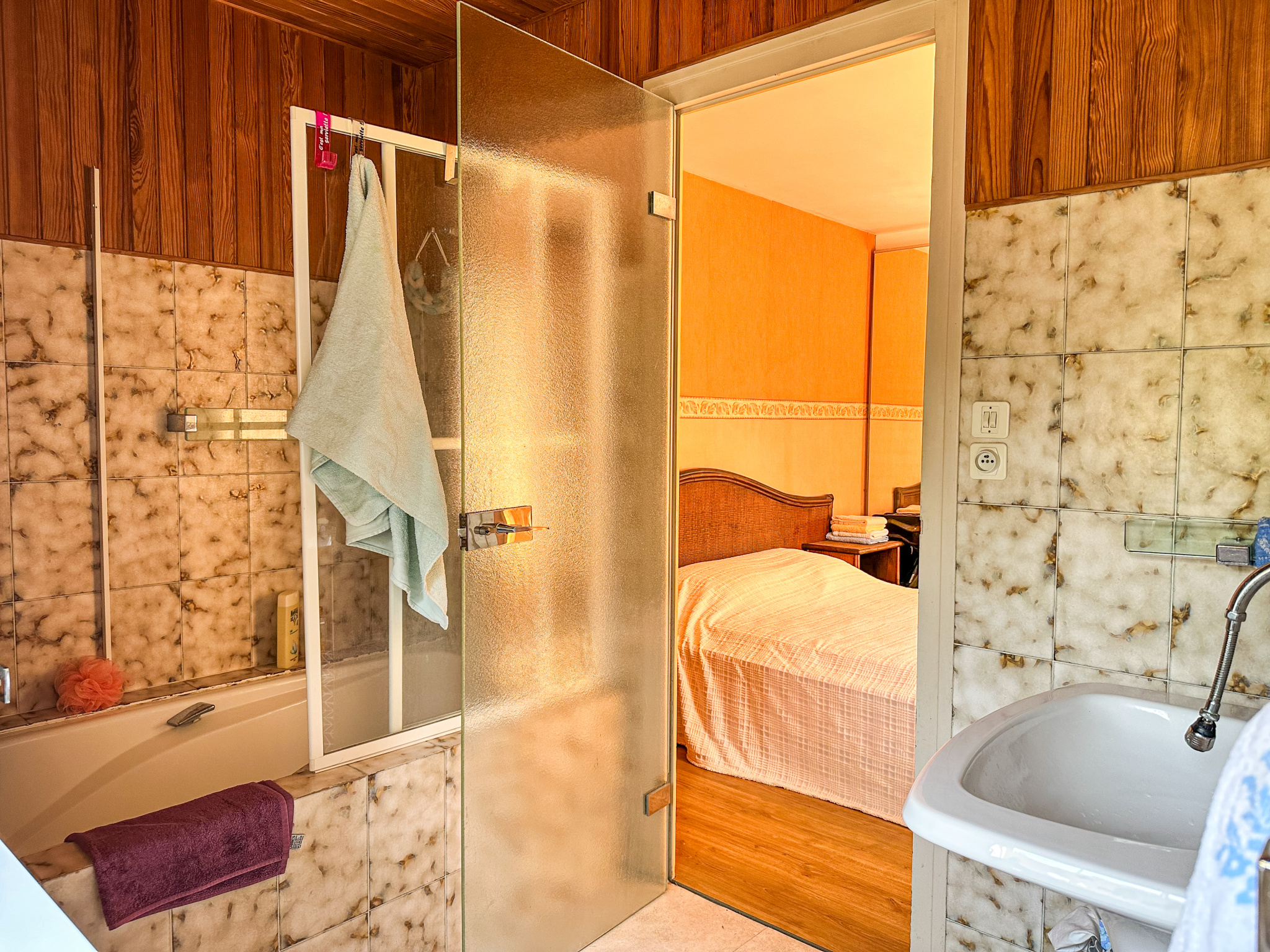 A l'étage, vous découvrirez trois grandes chambres de 15, 13 et 17m2 ainsi qu'une salle de bain avec WC indépendant.