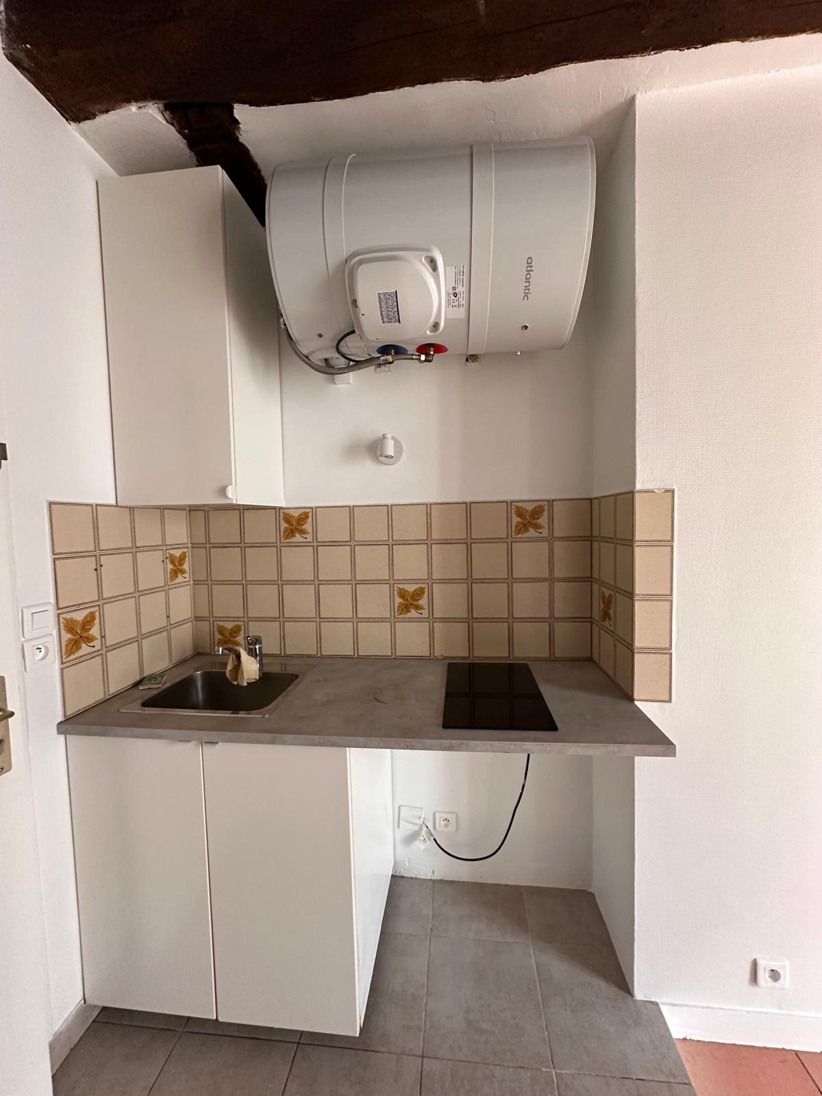 Studio rénové de 18.36 m2 composé d'une entrée, pièce principale avec poutres apparentes, un coin cuisine, une salle d'eau avec WC.