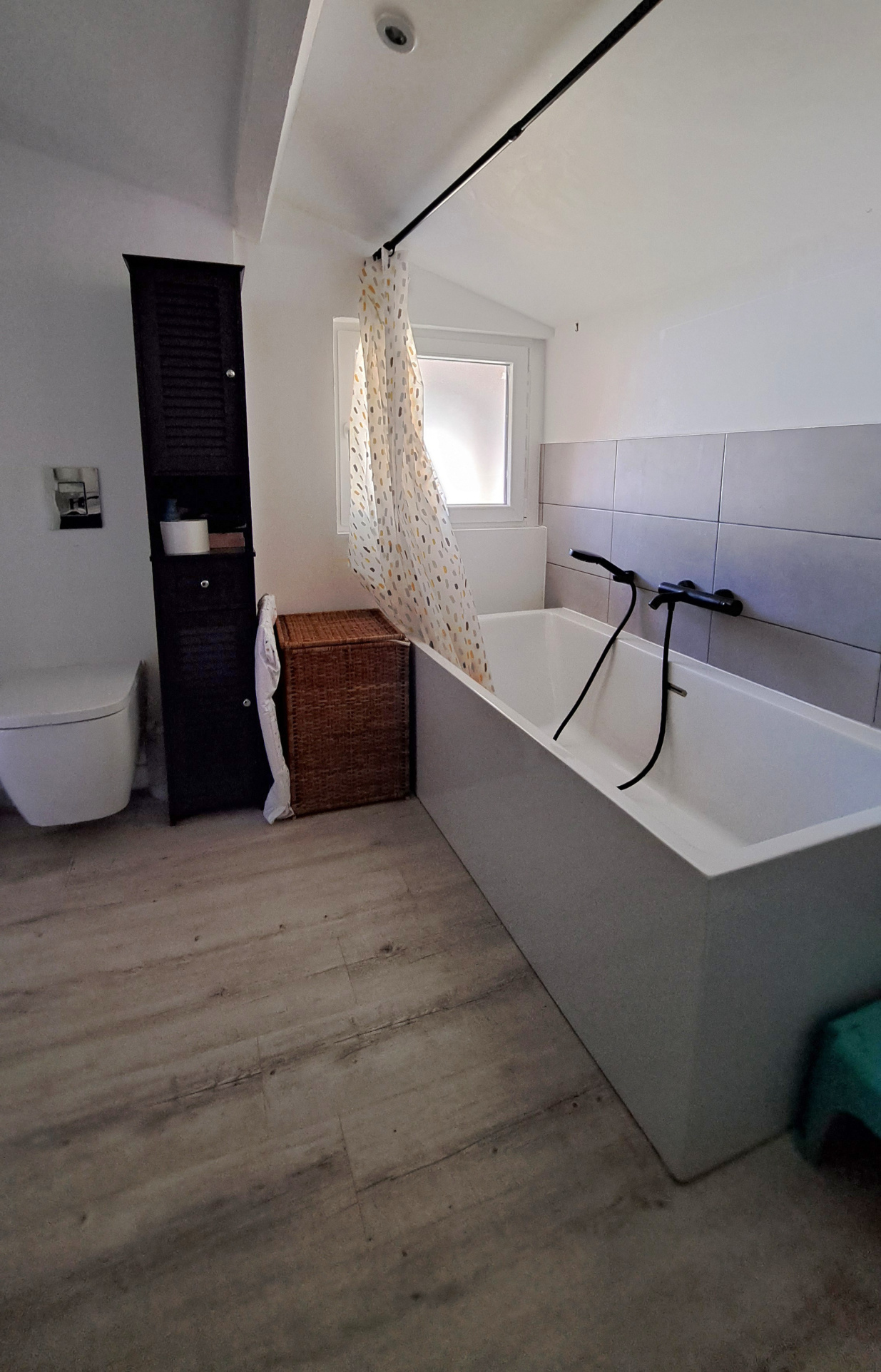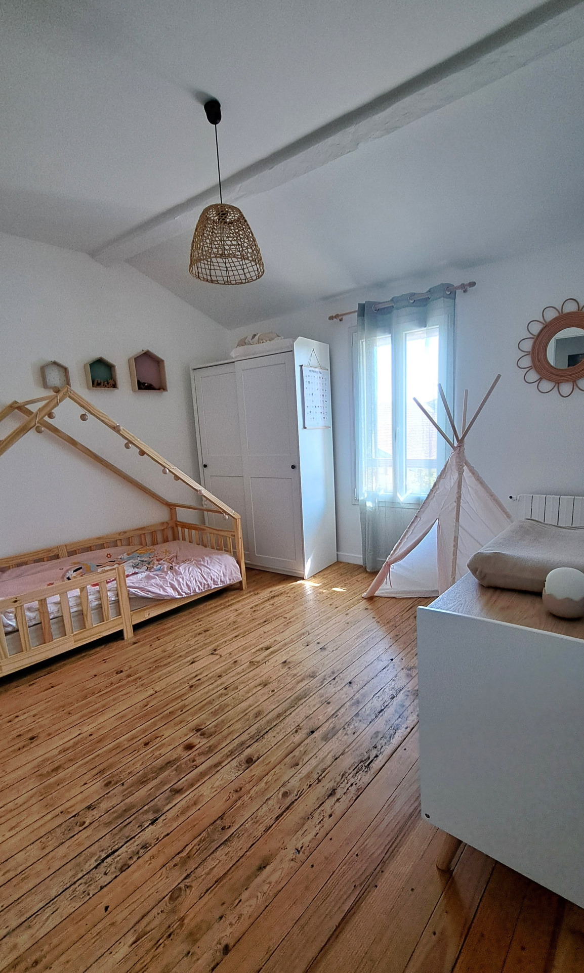 L'étage se compose de deux chambres spacieuses et d'une salle d'eau avec WC.