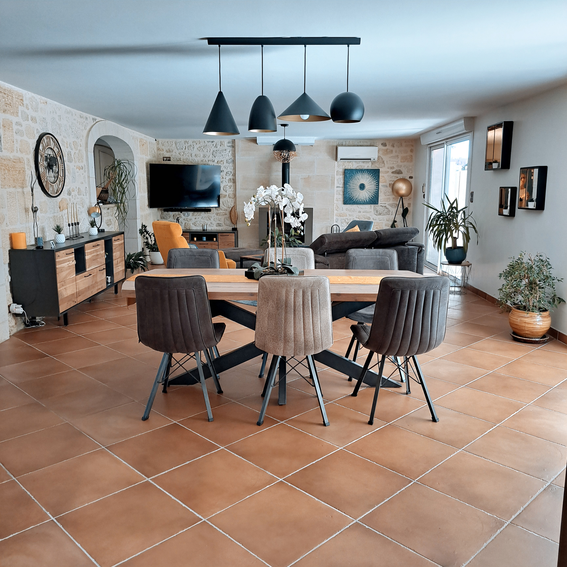 Découvrez cette magnifique maison en pierre de 216 m2, située sur un vaste terrain de plus de 4 000 m2, idéale pour les amoureux de la nature et du confort. Au rez-de-chaussée, vous serez charmé par une entrée accueillante menant à un grand salon séjour agrémenté d'un poêle à bois, parfait pour des soirées cosy. La cuisine fonctionnelle, accompagnée d'un cellier, ainsi que deux chambres dont l'une dispose d'une salle d'eau avec entrée indépendante, qui offrent un cadre de vie agréable.