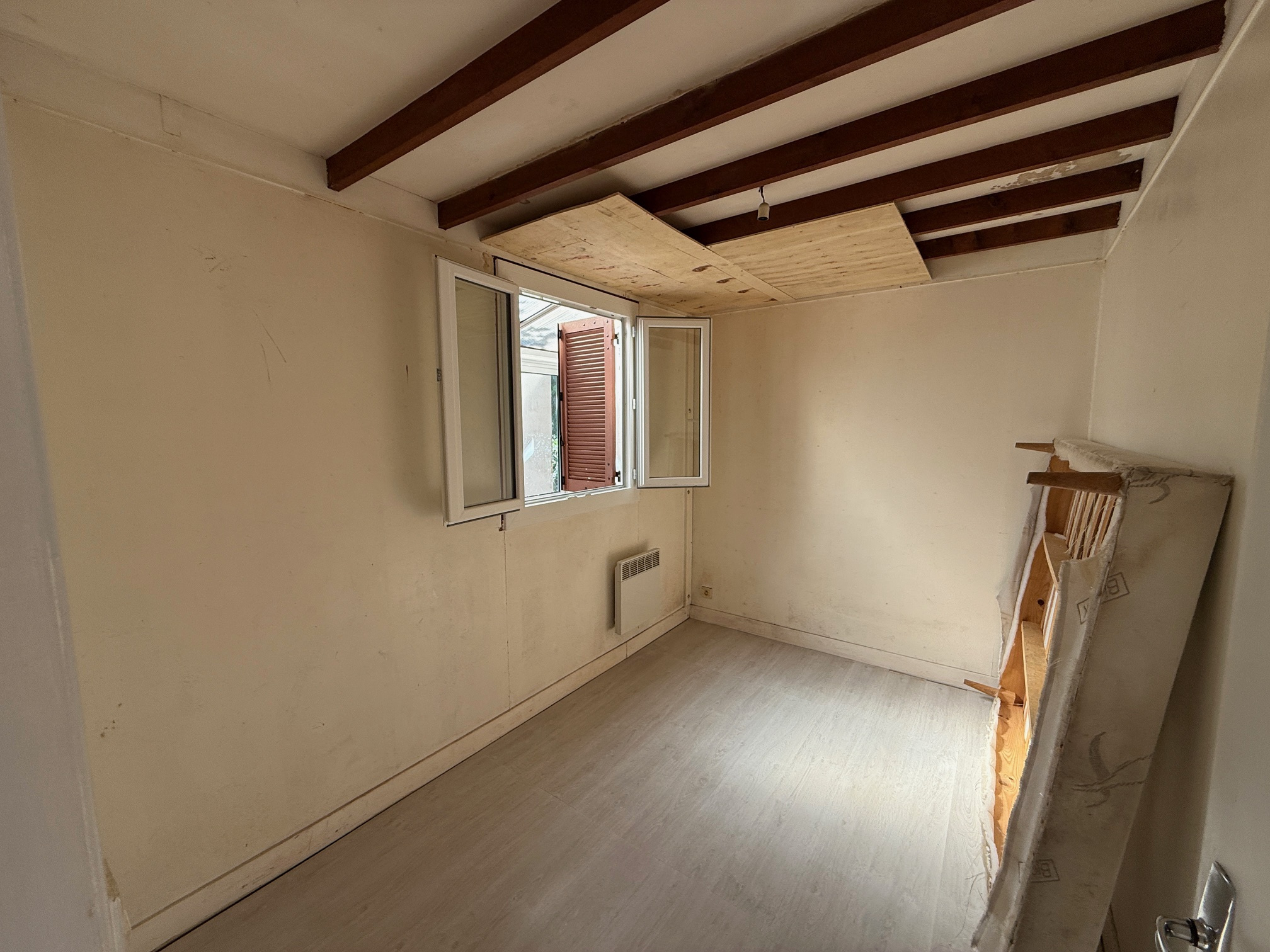 Toutes commodités à pieds pour cette maison ossature bois à rénover d'environ 37m2 habitable sur un beau terrain de 700m2. Deux abris de jardin. Le réglement d'Urbanisme ne permet pas d'augmenter l'emprise au sol mais seulement de surélever l'existant.