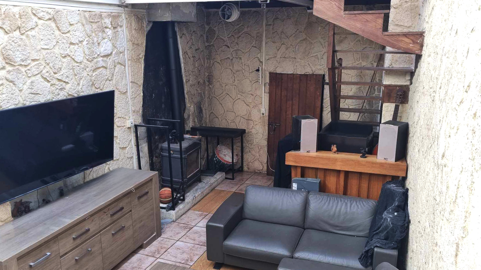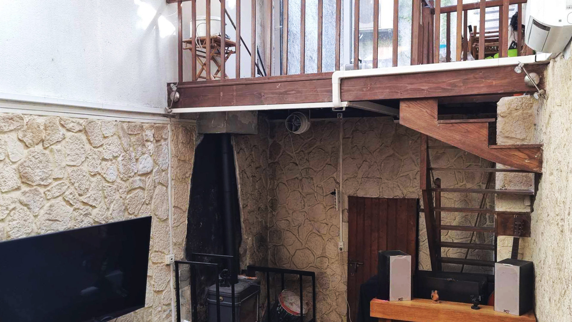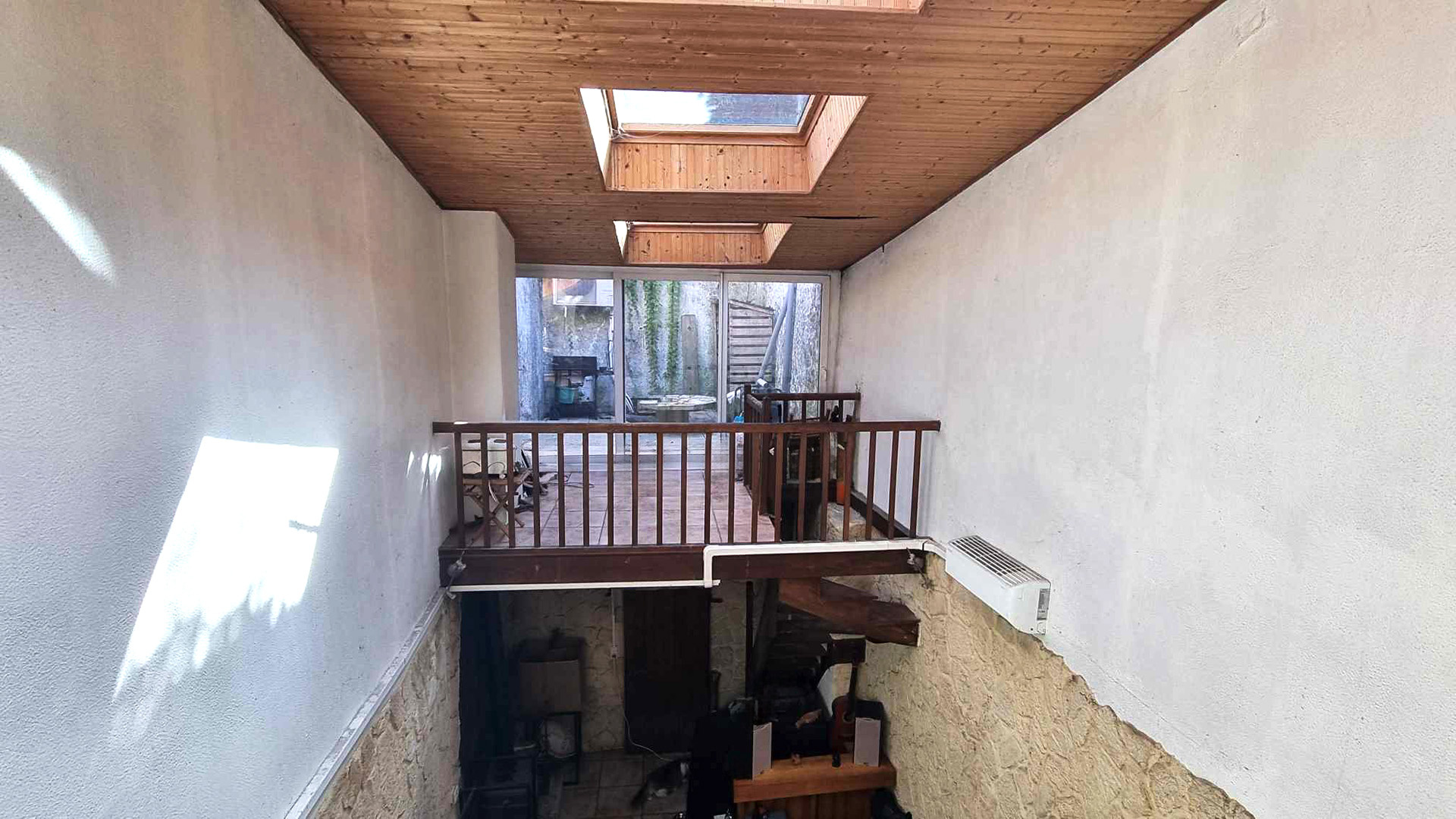 Atypique, elle comprend de plain pied : un grand bureau avec vitrine (possibilité de commerce), une cuisine aménagée et équipée, un salon-séjour avec plafond cathédrale.