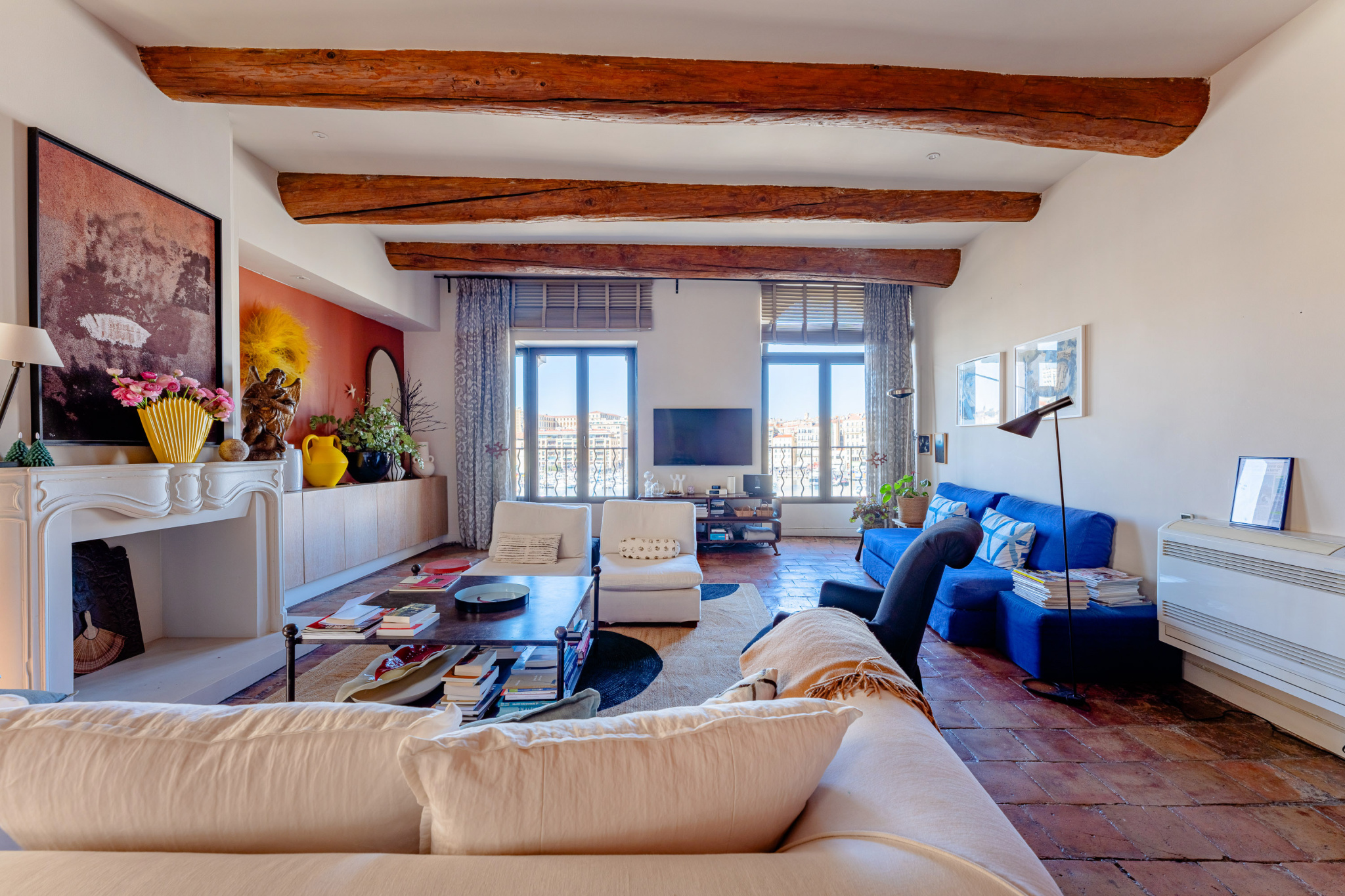 Situé en première ligne du Vieux-Port, dans un ancien arsenal chargé d'histoire, cet appartement de 143 m2 entièrement rénové par architecte allie le charme de l'ancien et l'élégance contemporaine.