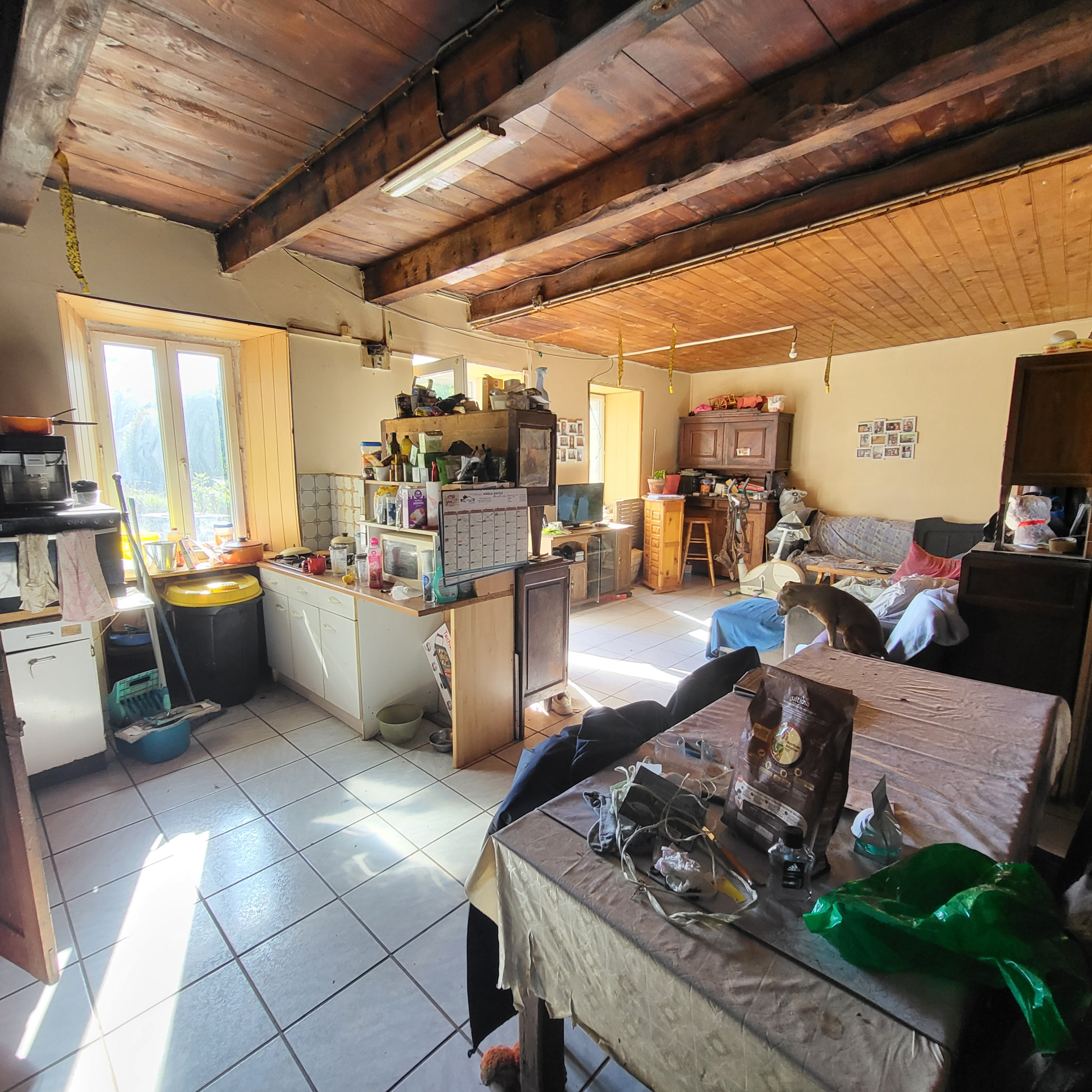 Elle est composée au rez-de-chaussée d'une pièce de vie avec cuisine, salon, salle à manger avec Cantou, cellier, placard, salle de bain.