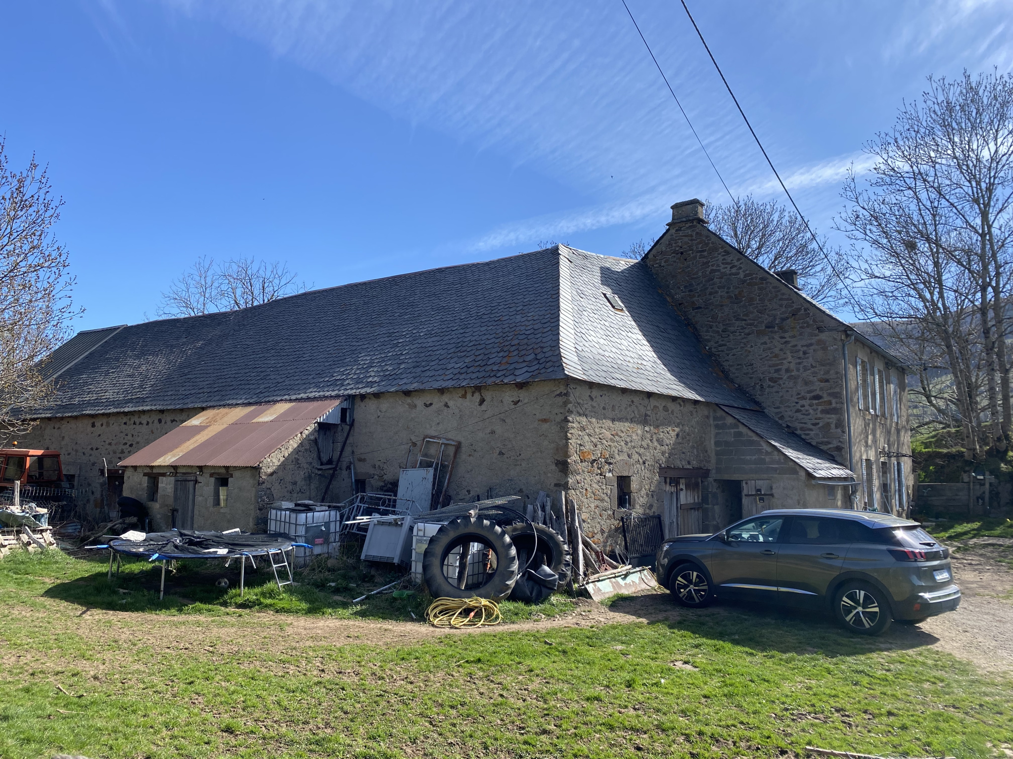 La maison fait 90 m2 habitables, en pierres, couverte en ardoises .