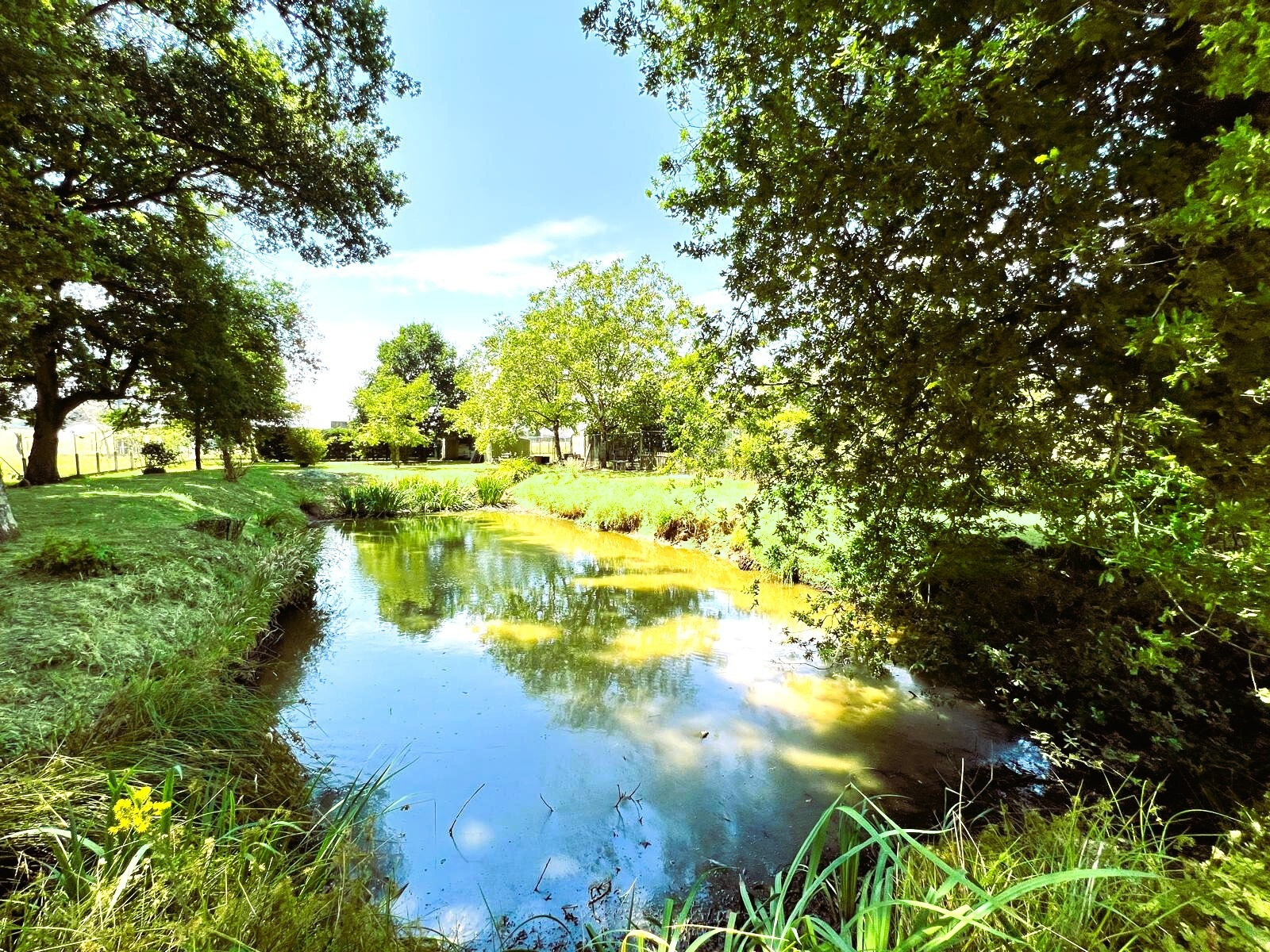 Le parc d'environ 6 000 m2 arboré et paysagé entièrement clos est agrémenté d'un plan d'eau. Elle comprend également une partie constructible et est piscinable.