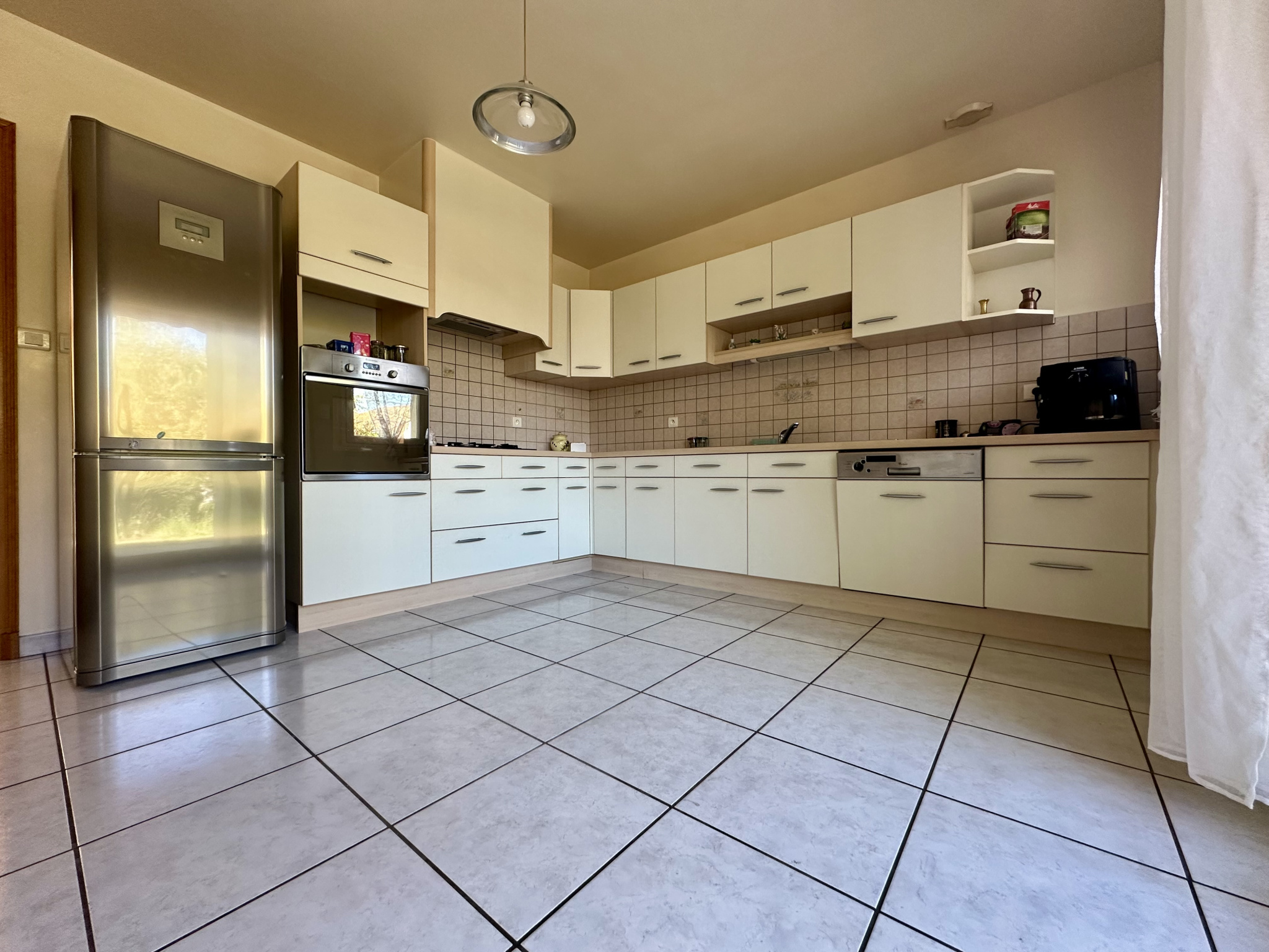 Composée d'une agréable pièce de vie spacieuse et luminueuse, d'une cuisine séparée donnant un accès à une grande terrasse bien exposée (possibilité d'ouverture sur le salon). Le coin nuit offre trois belle chambres, une grande salle d'eau avec rangement et un WC.