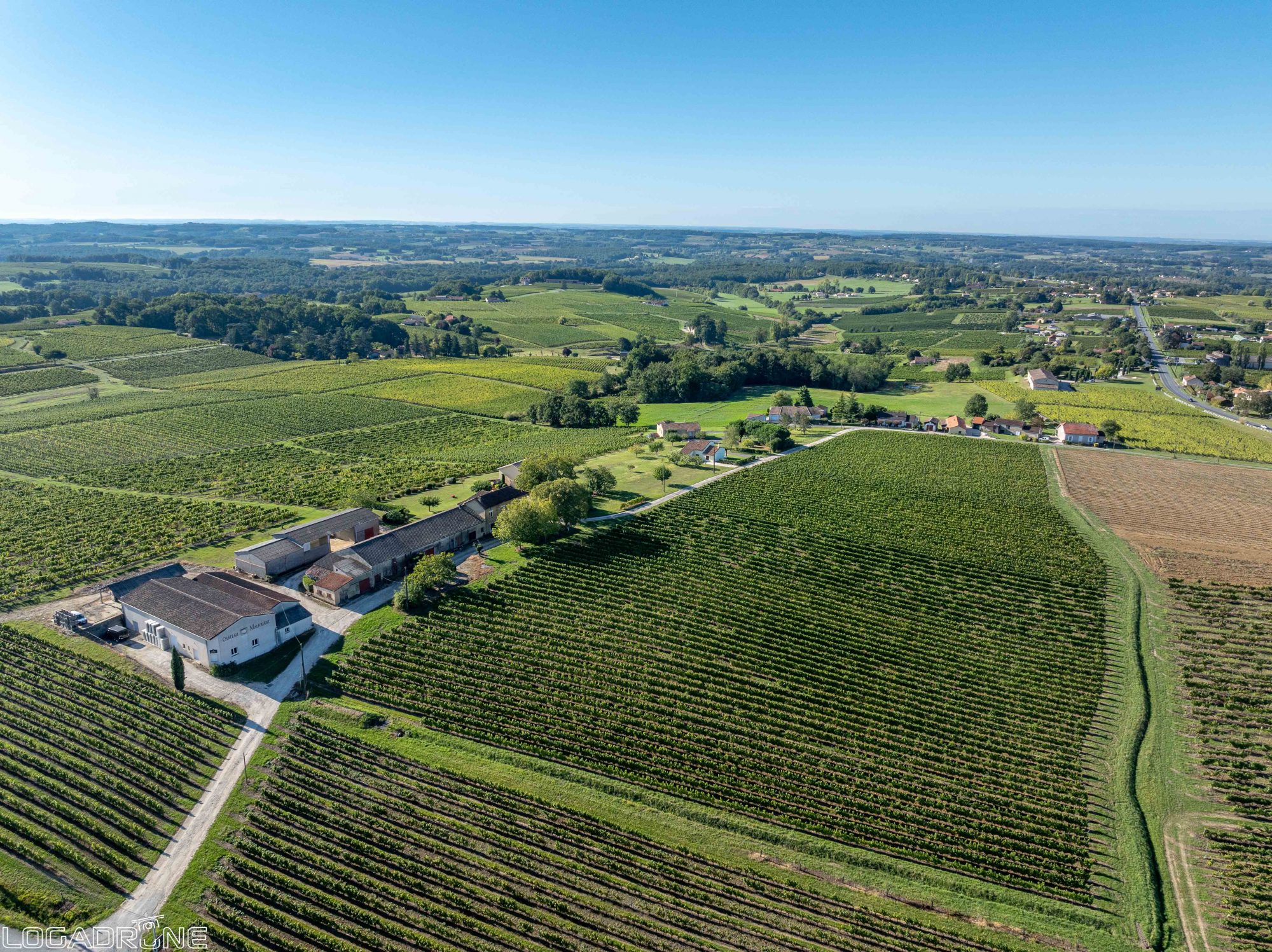 Venez découvrir cette magnifique maison en pierre mitoyenne et ses nombreuses dépendances et ses 2 Ha de cépage de sémillon de Monbazillac avec des traitements non CMR. Elle est parfaite pour une multitude de projets grâce à ses bâtiments agricoles attenants sur terrain d'environ 2000m2. Sa position élevée offre des vues panoramiques sur les vignes et la ville de Bergerac. Elle comprend : salon, salle à manger avec coin cuisine, cave/chaufferie avec pompe à chaleur, salon d'hiver, 2 chambres, cuisine non amenagee, 2 salles de bain avec WC. un WC séparée et 4 chambres à l'étage. Plusieurs dépendances dont un chai attenantes cumulent env. 340 m2 . Travaux à prévoir (salles de bain, cuisines et isolation). Double vitrage et stores roulants. Ce impresssionant bâti peut facilement être divisé en deux logements. Cette belle propriété est à seulement 8 minutes de Bergerac et l'aéroport . A voir rapidement!