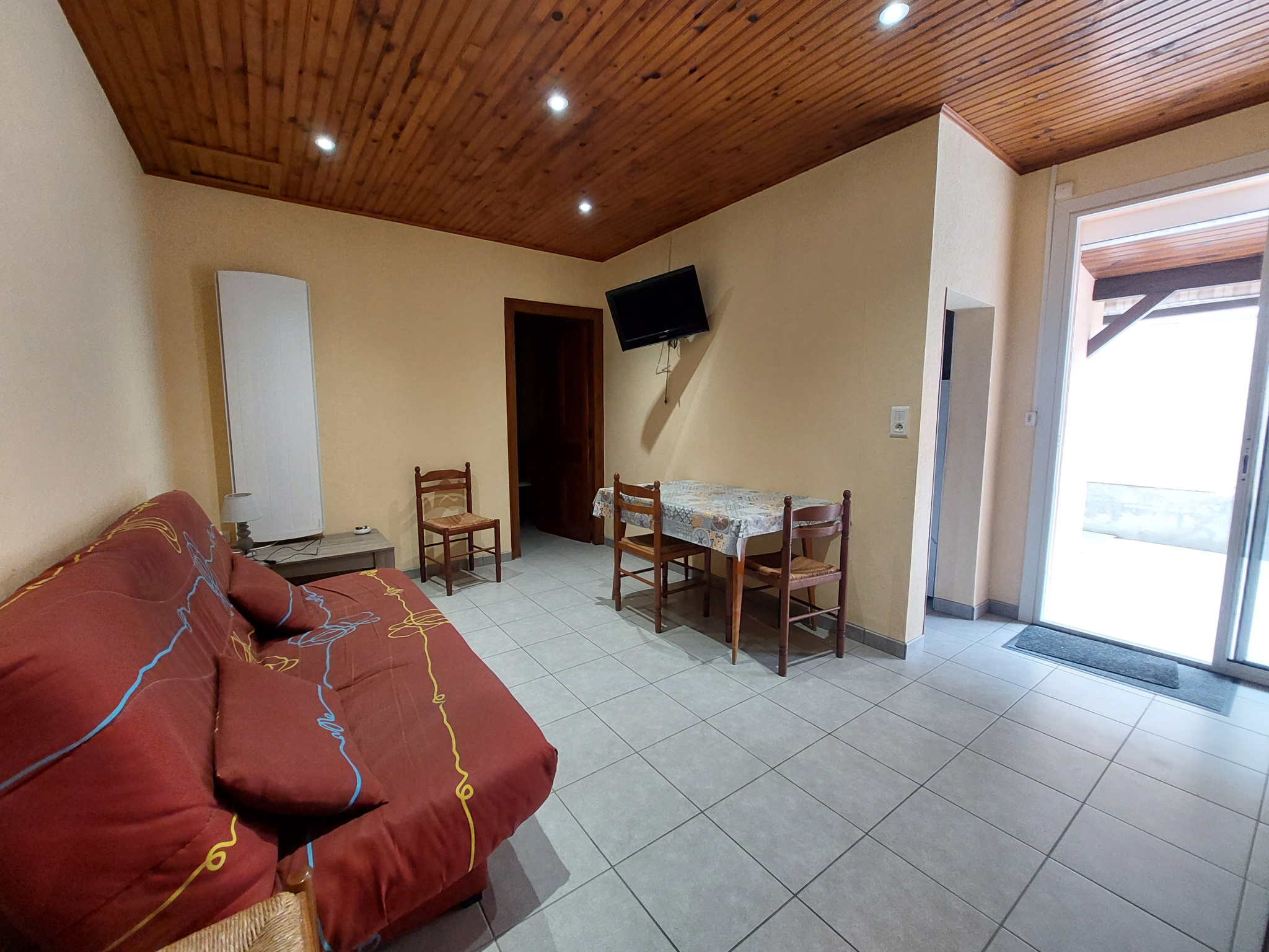 T3 (?47 m2) : cuisine indépendante équipée, petit salon chaleureux, deux chambres, salle d'eau avec WC et terrasse.