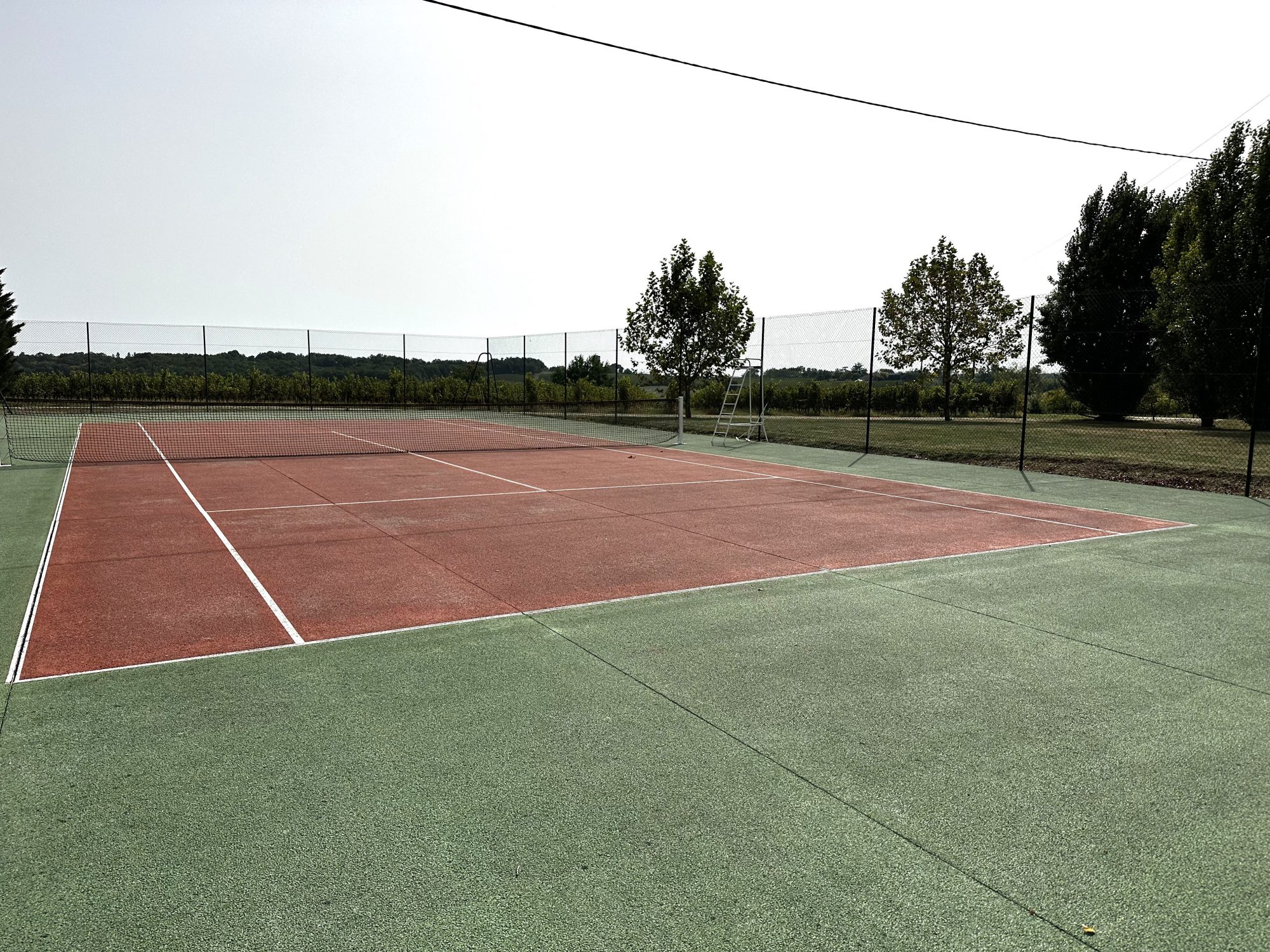 Un vignoble en activité avec une belle maison familiale en pierre, un gîte, une piscine et un court de tennis. Offrant une option polyvalente d'être un vignoble de loisir ou une entreprise à temps plein. Il y a un total de 26 hectares dont environ 8 hectares de vignes matures (Merlot, Cabernet Franc et Sauveterre Blanc). Il y a un chai à vin entièrement équipé. La propriété comprend également une fabuleuse maison en pierre bien présentée, située dans une position élevée et isolée, offrant des vues panoramiques sur les vignobles et les champs. A seulement 10 minutes de Duras avec son marché hebdomadaire, ses cafés et ses magasins. La maison principale offre une maison moderne et spacieuse avec du caractère, 3 chambres avec salles de bains, une fabuleuse cuisine/salle à manger avec une double hauteur de plafond, un salon spacieux et chaleureux. L'annexe/gîte comprend 2 chambres doubles, un salon de caractère, une grande cuisine/salle à manger moderne et une grande terrasse couverte avec d'excellentes vues sur les vignobles. Il y a une piscine isolée de 15 mètres de long avec vue et un court de tennis.
