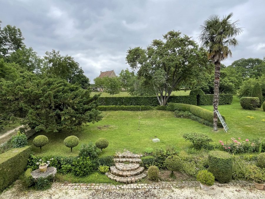 A 20mn de Bergerac et de son aéroport, cette maison de maître, agrandie dans les années 30, veille paisiblement sur son parc et son jardin où une piscine a discrètement été implantée à l'abris du regard, mais avec vue sur une nature boisée et verdoyante. Avec ses 234m2 répartis sur deux niveaux, elle se compose de deux vestibules, d'une cuisine dinatoire avec accès au parc et à une terrasse couverte, d'un séjour salle-à-manger de 60m2, de deux chambres, d'une salle de bains et d'un WC séparé au rez-de-chaussée, et de trois chambres, d'une mezzanine et d'une salle d'eau avec WC à l'étage. Une grange double hauteur et un atelier ouvert servant de chaufferie et de local piscine, ainsi qu'un cellier, tous en pierre, viennent compléter le bâti. Un verger et un jardin joliment arboré et clôturé entourent la propriété et une parcelle de terrain sert de stationnement pour les invités. Un bijou! Visite virtuelle disponible sur demande.