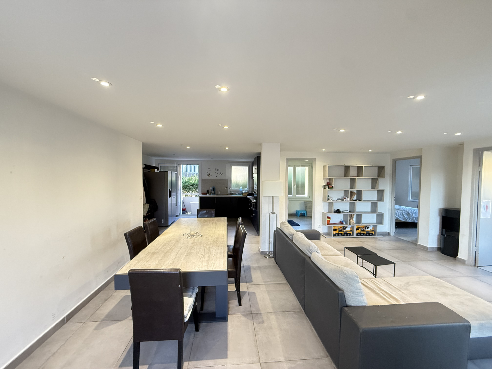 Il se compose d'un grand salon lumineux avec cuisine ouverte entièrement équipée , idéal pour recevoir .
