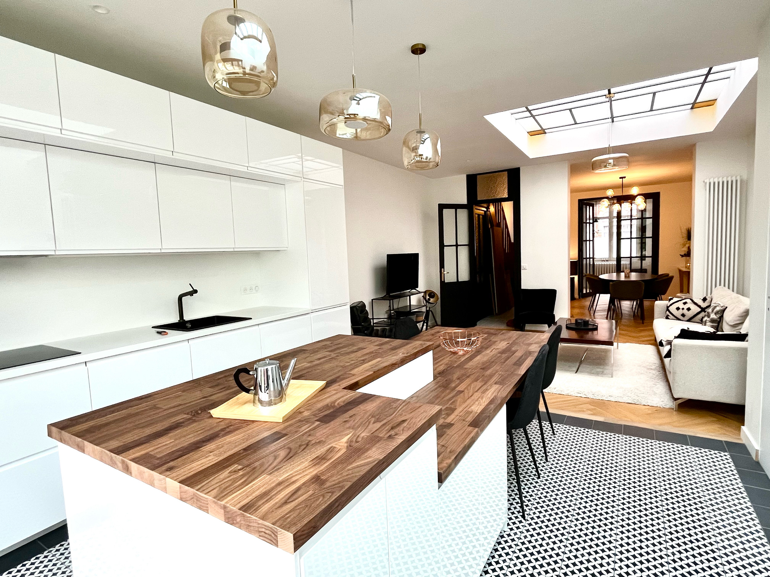 Découvrez cette magnifique maison de 135 m², construite en 1930 et récemment rénovée en 2025, alliant charme d'antan et confort moderne. Située dans un quartier paisible, cette propriété de trois niveaux vous offre un cadre de vie idéal pour les familles ou les amateurs d'espaces spacieux. Au rez-de-chaussée, vous serez séduit par un vaste séjour de 40 m² baigné de lumière, parfait pour les réunions familiales ou les soirées entre amis. La cuisine ouverte, équipée de matériaux haut de gamme, donne accès à une terrasse de 15 m², idéale pour les dîners en plein air. À l'étage, vous trouverez quatre chambres spacieuses, dont une suite parentale avec salle de bains privative. Une salle de bains et une salle d'eau complètent cet étage, offrant tout le confort nécessaire. Le troisième niveau abrite une cave spacieuse, parfaite pour le rangement ou les loisirs. Le jardin bien entretenu invite à la détente et aux moments en plein air. Imaginez-vous profitant de vos matinées avec un café en main, entouré de la nature. Cette maison est éligible à l'internet haut débit et à la fibre, garantissant une connectivité optimale pour le travail ou les loisirs. À proximité, vous trouverez plusieurs commodités : des bus à 5 minutes à pied, des crèches, des maternelles et des écoles élémentaires à 10 minutes à pied, ainsi qu'un supermarché et plusieurs restaurants à 5 minutes à pied. Un hôpital et un médecin généraliste sont également accessibles en quelques minutes en voiture. Ne manquez pas cette opportunité de vivre dans une maison pleine de caractère, alliant histoire et modernité. Contactez-nous dès aujourd'hui pour une visite !