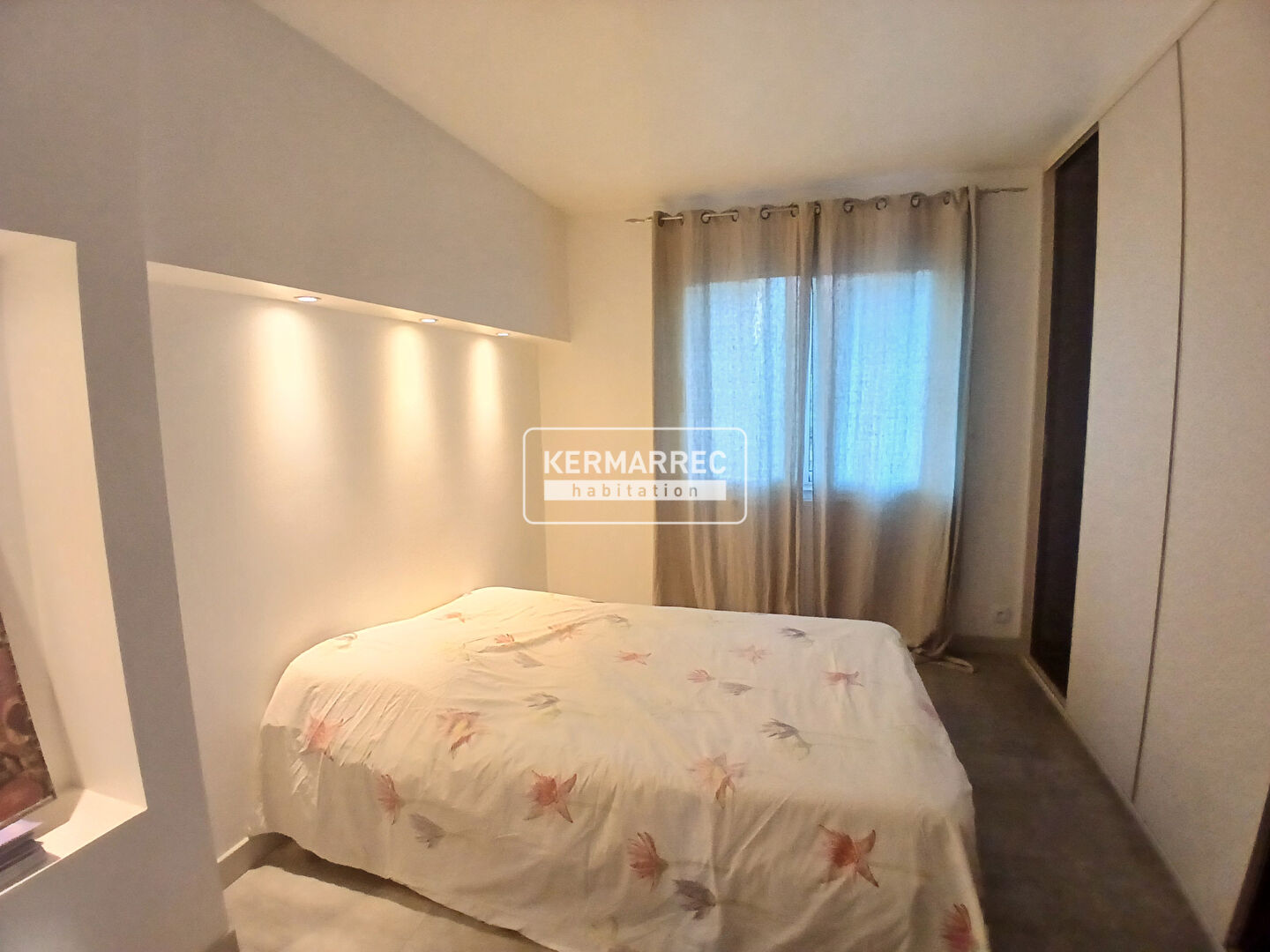 Agrandie en 2014, elle bénéficie d'un espace de vie spacieux, avec une triple exposition, d'une cuisine qualitative et fonctionnelle, une chambre avec un grand mur de placard, un espace lingerie (pouvant être retransformé en chambre), une salle d'eau et des wc .