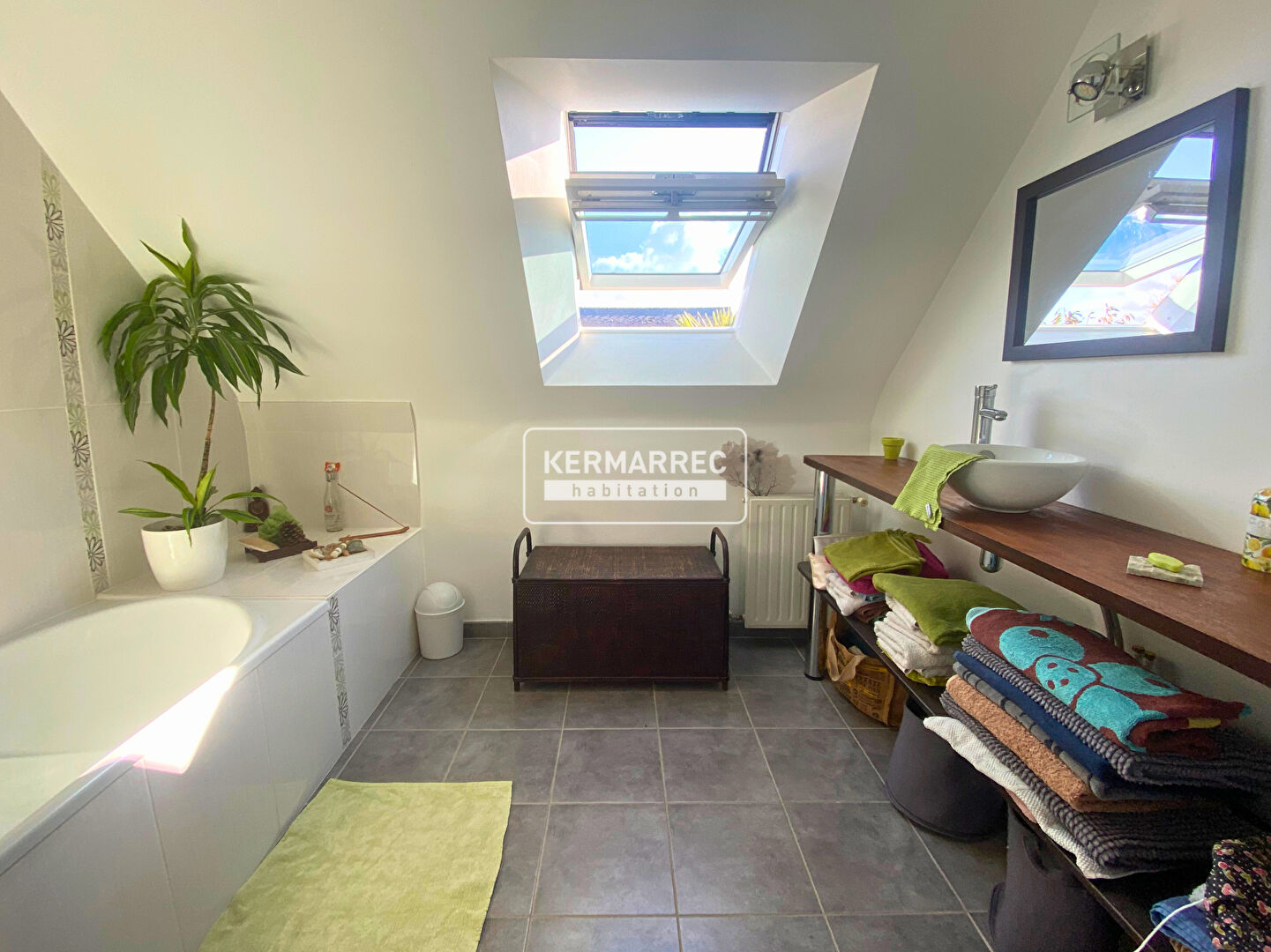 Une buanderie attenante à la cuisine et un garage viennent compléter le tout.
