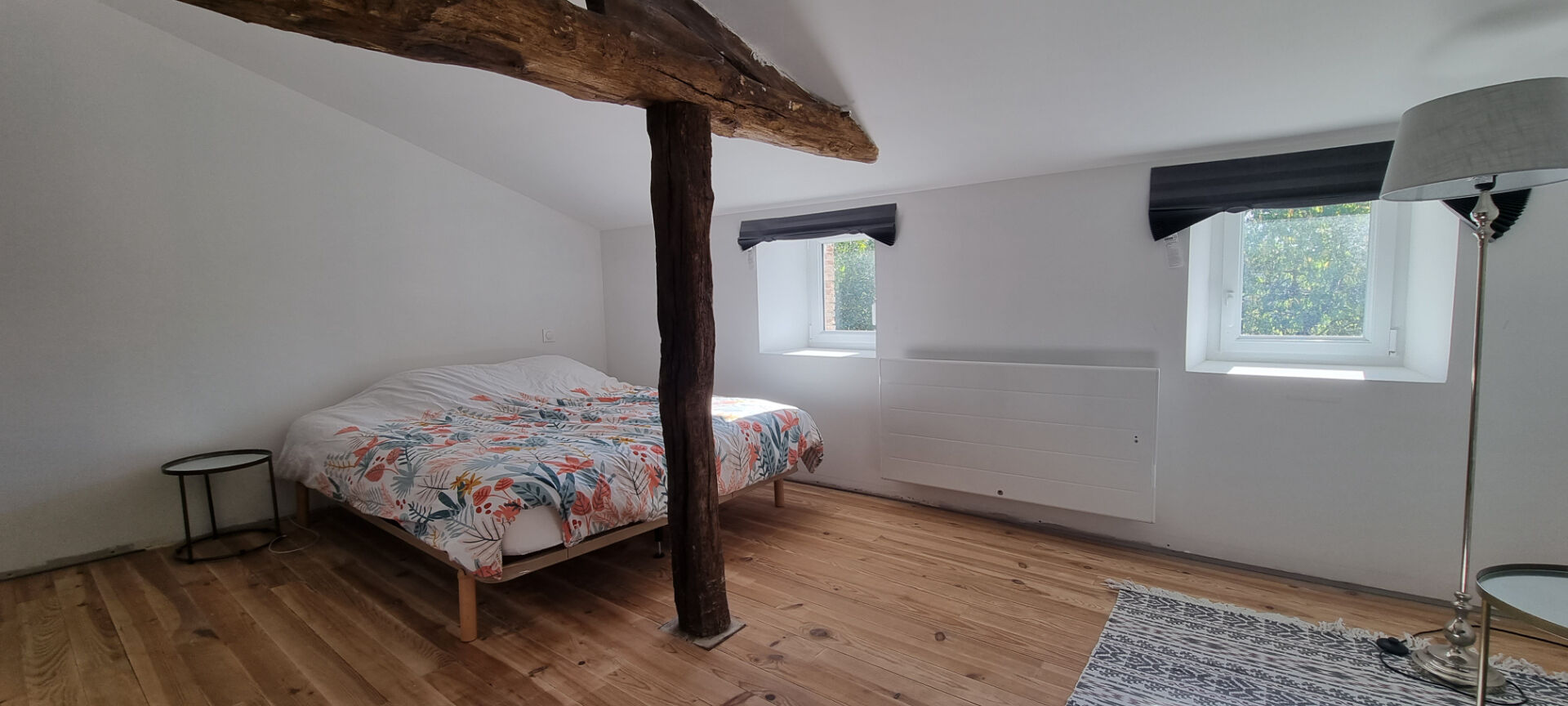 À l'étage, deux belles chambres (15 et 21 m²) et un palier pouvant faire office de bureau.