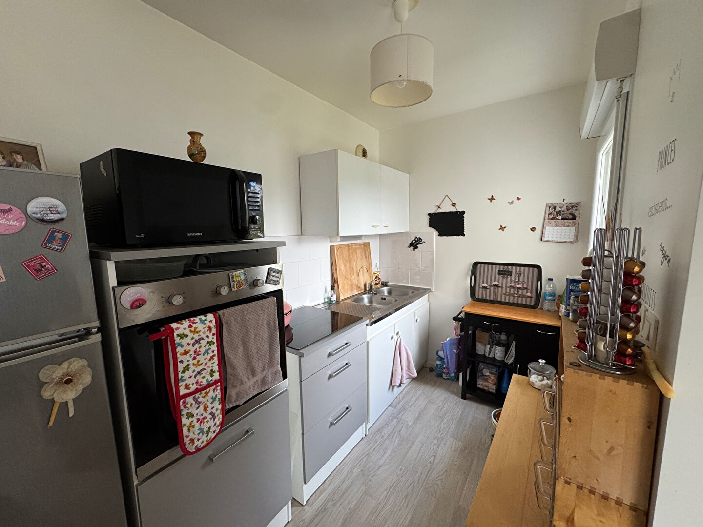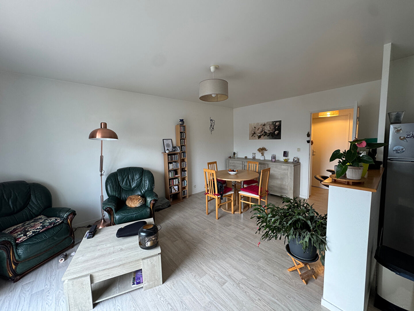 Cet appartement comprend : entrée avec placards, salon/séjour exposé sud/ouest avec cuisine ouverte et grand balcon, couloir desservant 2 chambres, salle d'eau et wc séparé.