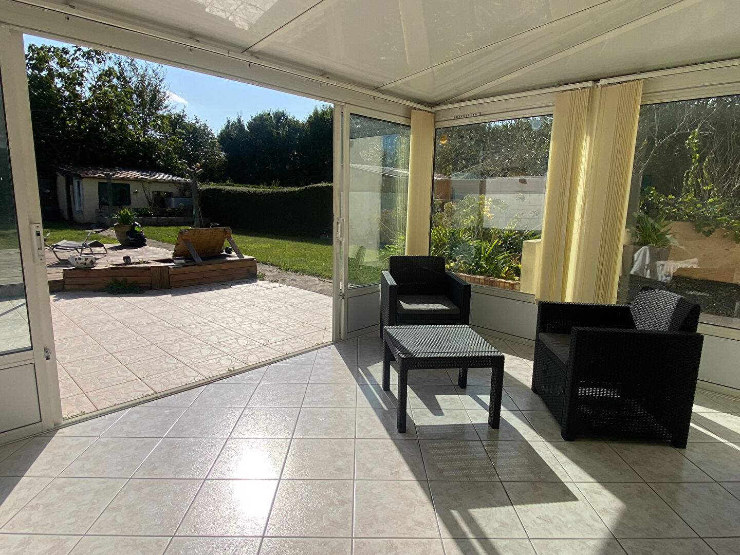 Véranda donnant sur terrasse avec SPA et jardin exposé sud sans vis à vis avec dépendance. Sous-sol composé d'un garage et atelier avec espace buanderie. Stationnements sur la parcelle.
