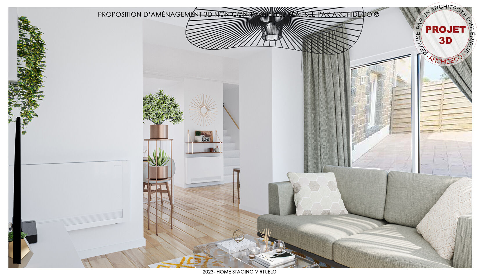Votre agence Guy Hoquet Saint-Brieuc vous présente un projet ARCHIDECO - HOME STAGING VIRTUEL® réalisé par un architecte d'intérieur (proposition d'aménagement 3D non contractuelle). Contactez-nous pour plus d'informations.