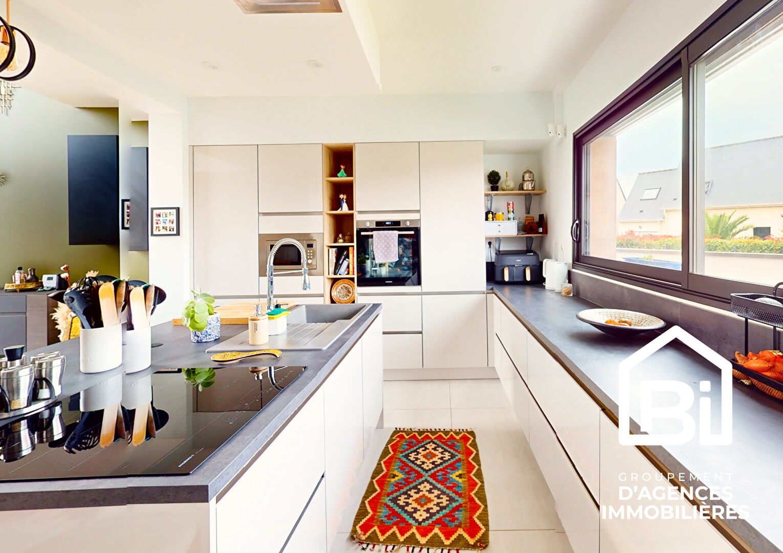 Prestations et matériaux de qualités (chauffage au sol au rez-de-chaussée, pompe à chaleur, menuiseries, mobilier (cuisine, salles de bains), porte de garage motorisée ...)
