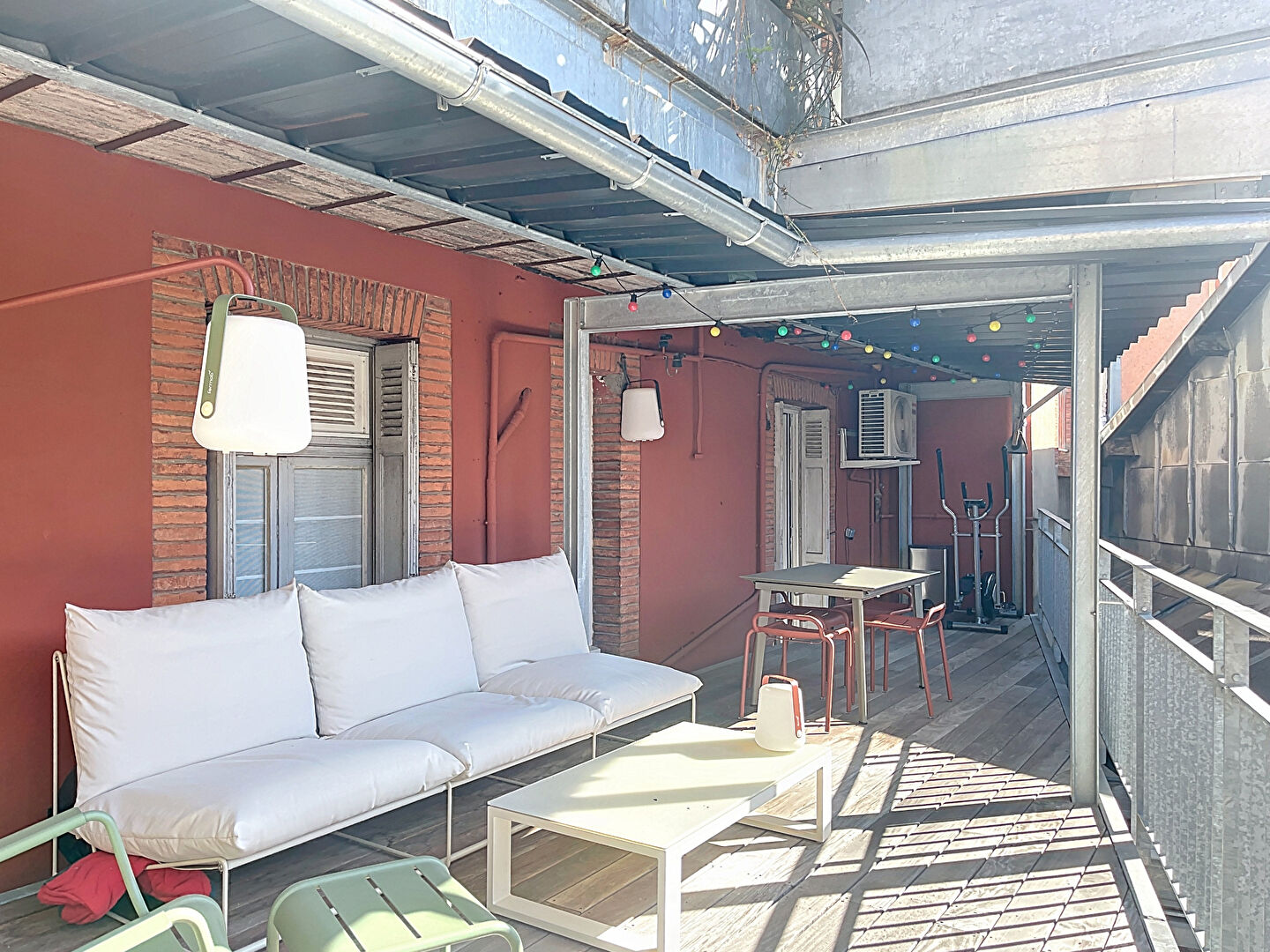 L'espace de vie donne sur une terrasse de 35 m², partiellement couverte, rare en centre-ville.