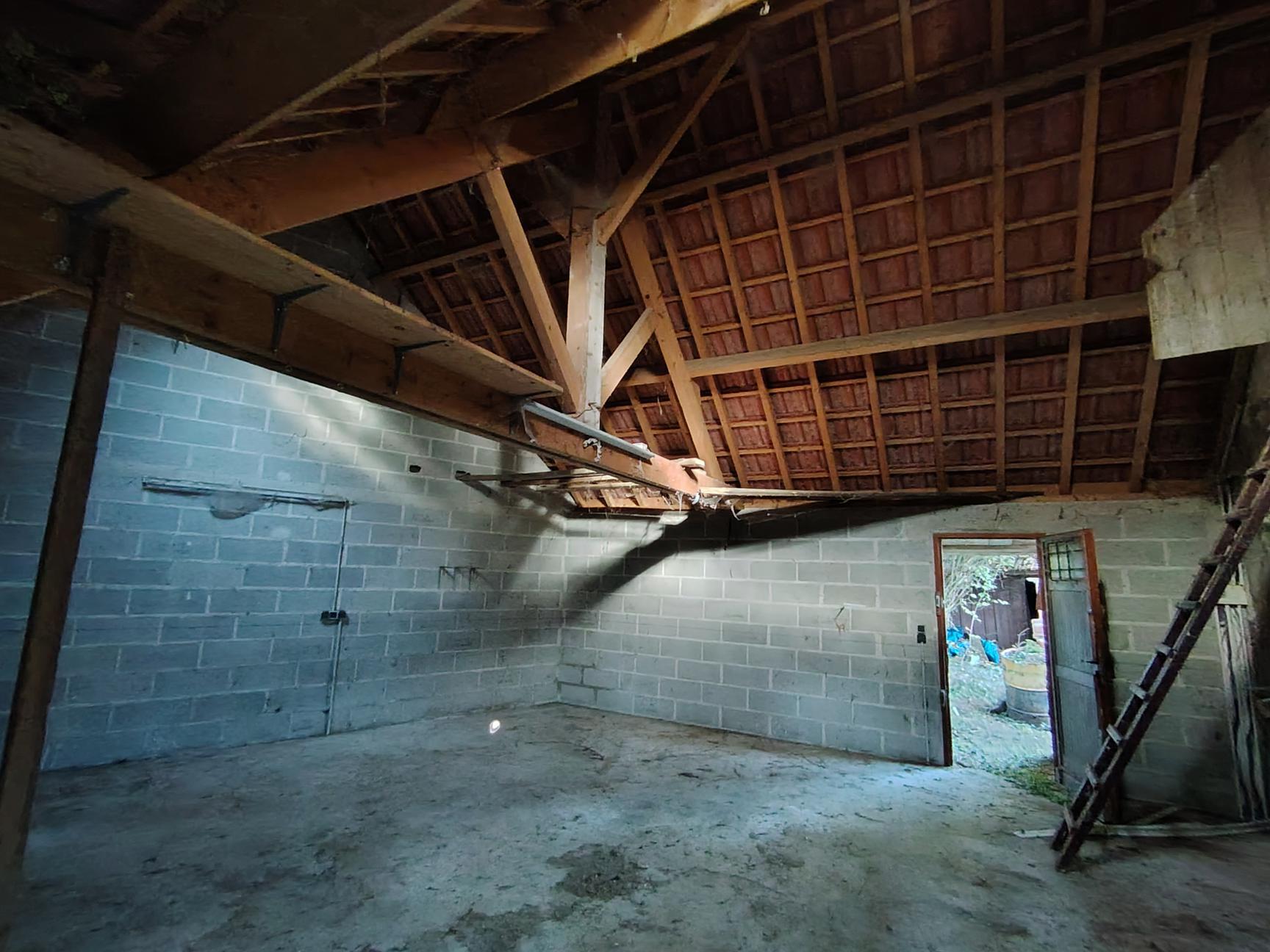 MC 4725 - Chatres, Maison d'habitation à rénover entièrement (sauf toiture) d'une superficie d'environ 70 m². La partie garage qui est propre et accessible depuis la maison, peut agrandir ce bien de 40 m². Double vitrage. Pas d'assainissement, ni de chauffage. Terrain clos et arboré de 738 m².